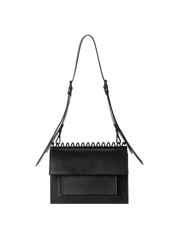 Black squared shoulder bag with metallic spiral