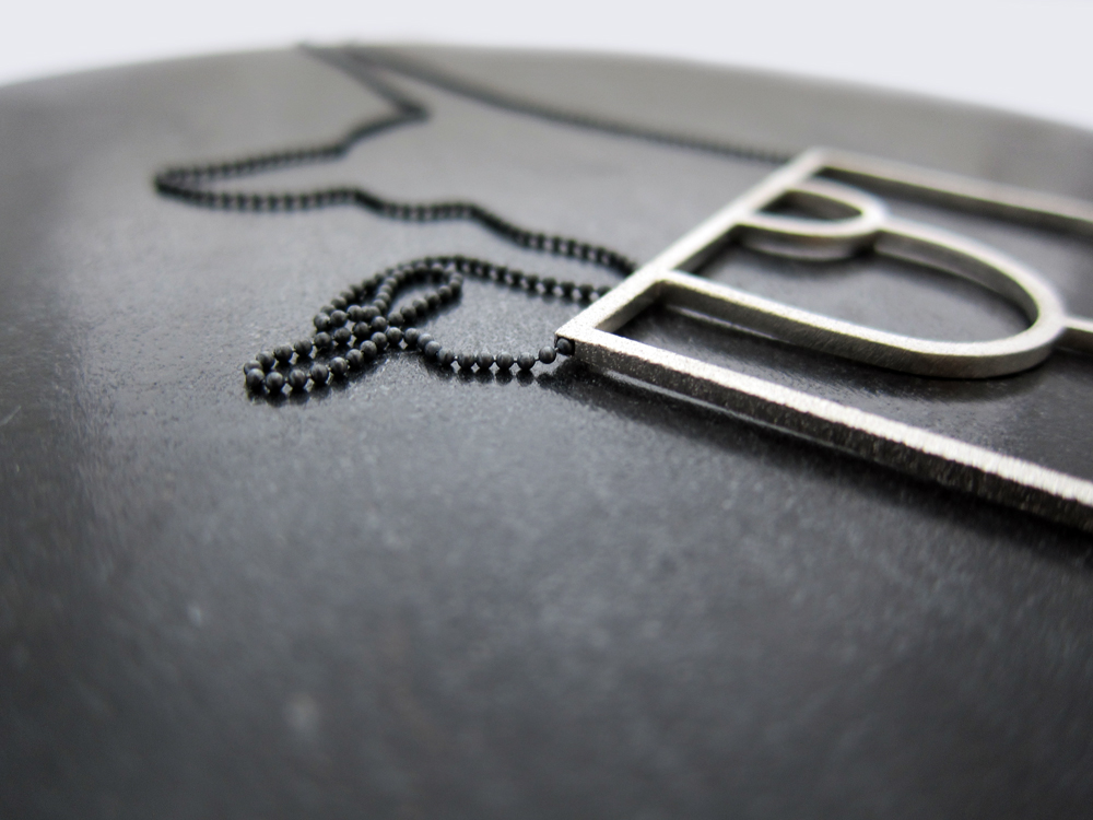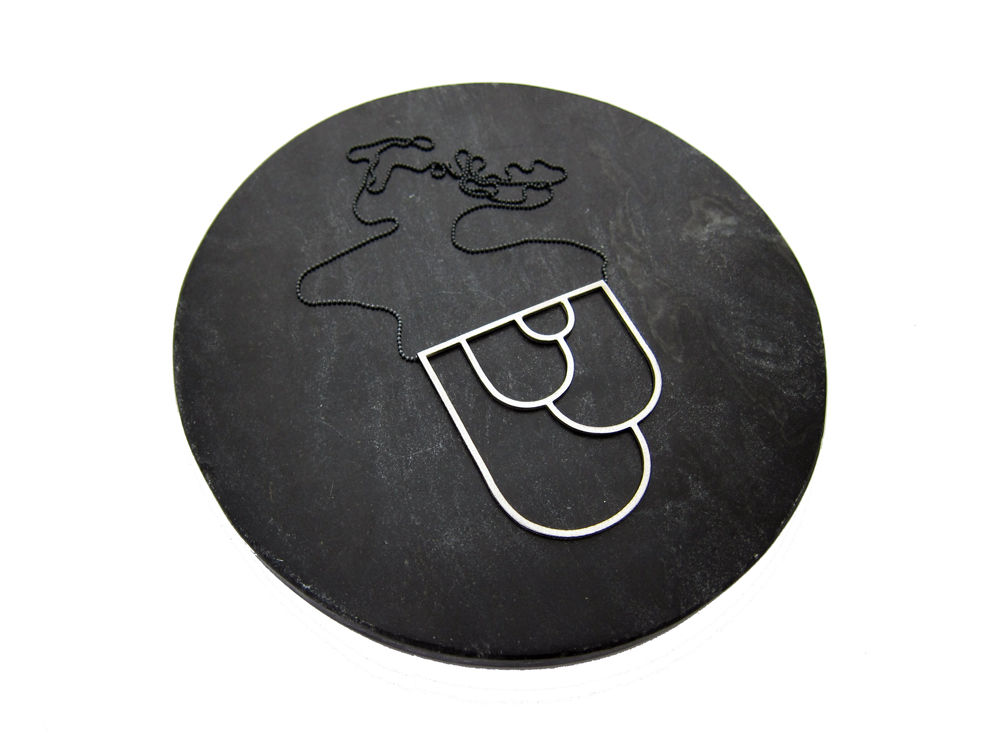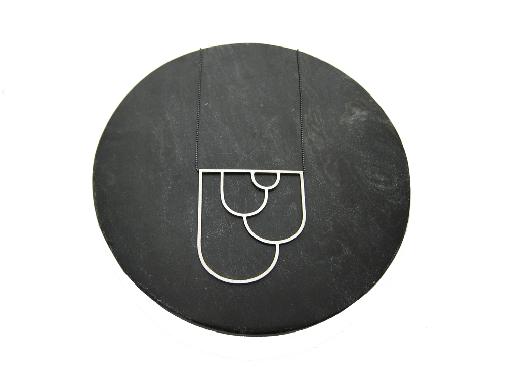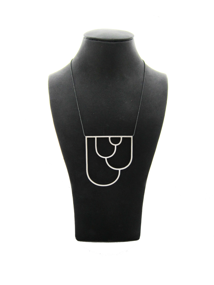ARCH necklace Handmade nickel free silver necklace with a grey oxidized faceted ball chain. You can also choose a silver ball chain instead. Material: Nickelfree silver Chain: 1.2mm faceted oxidized ball chain, 70cm Size: 6.5cm wide, 7cm tall. Thickness of pendant 2mm Handmade by: Malin Jansson