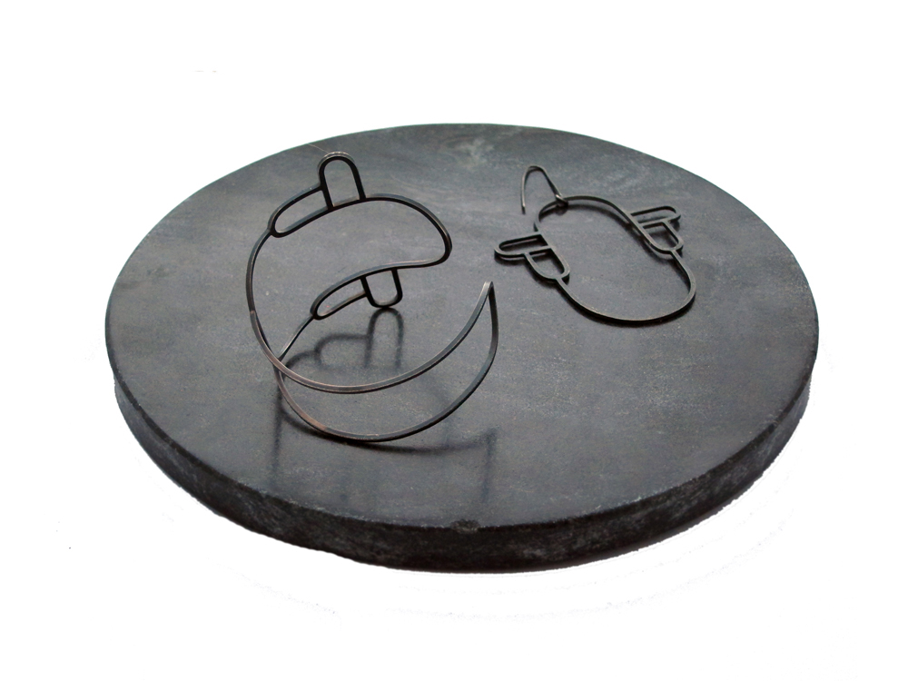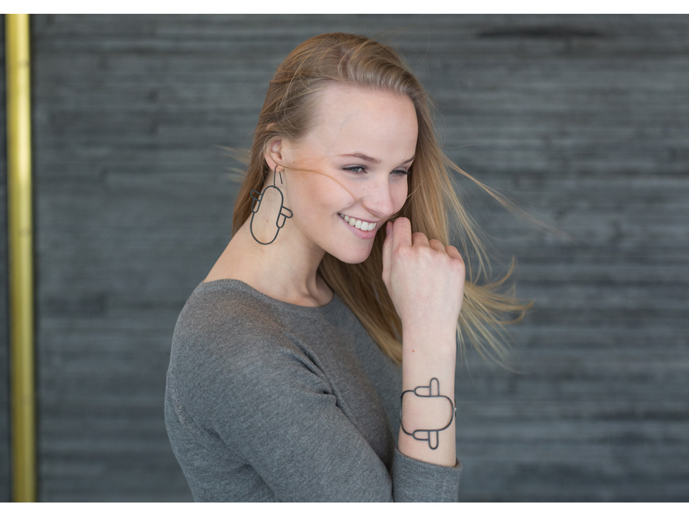 ARCH bracelet and solo earring Handmade nickel free silver. Choose between silver or oxidized silver. Matt surface. Material: Nickelfree silver Bracelet: Open size Solo earring: 7cm tall, 6cm wide. Loop in ox. silver Handmade by: Malin Jansson
