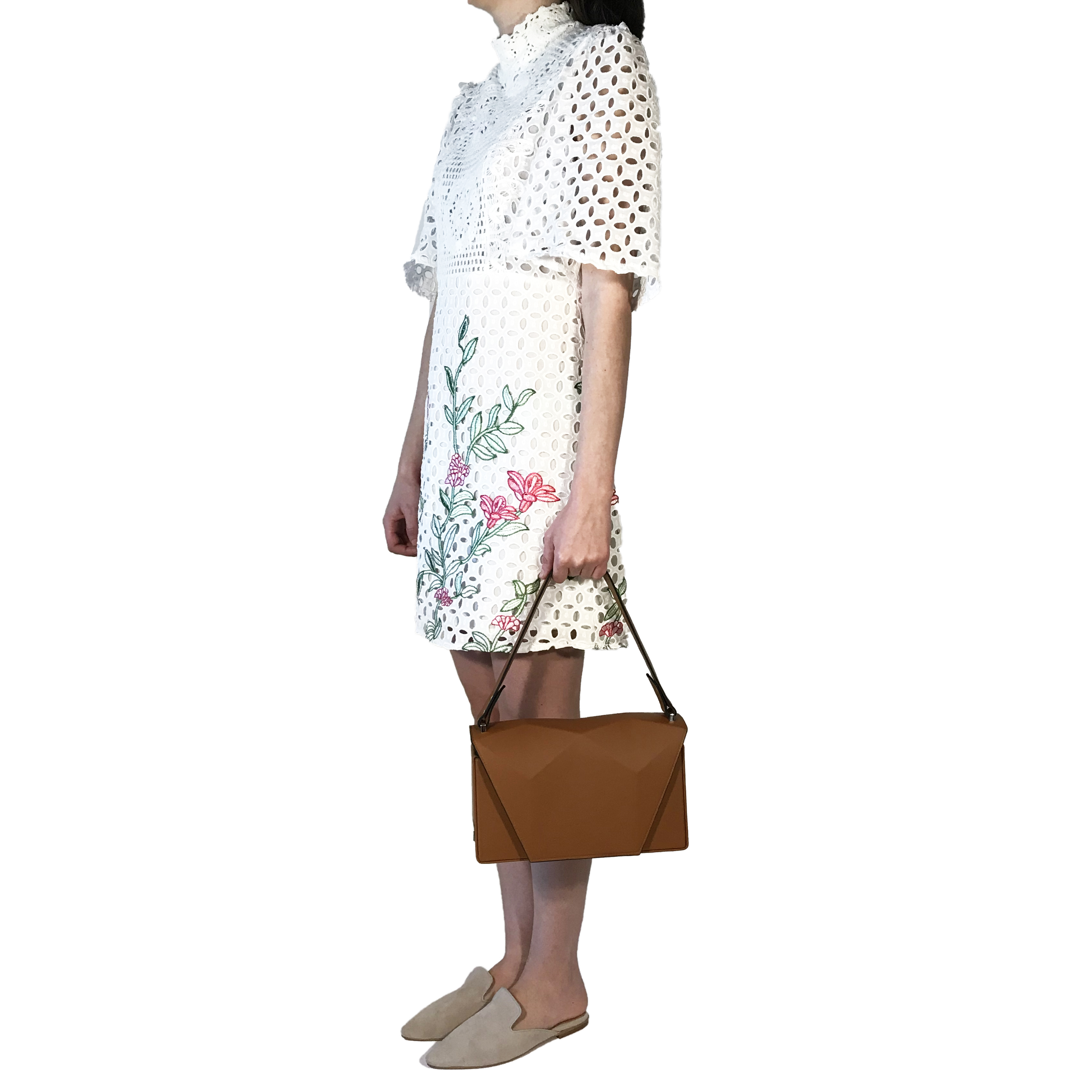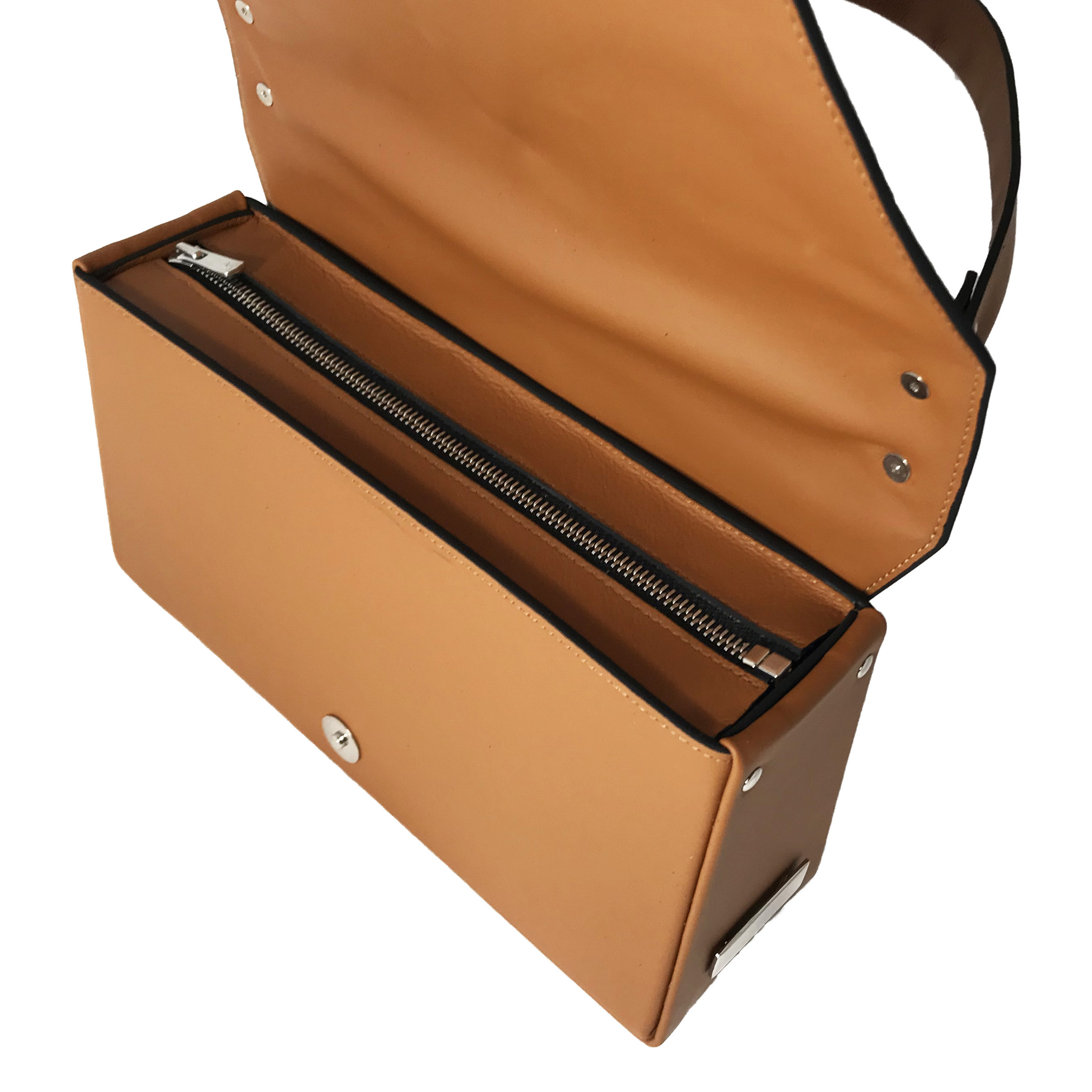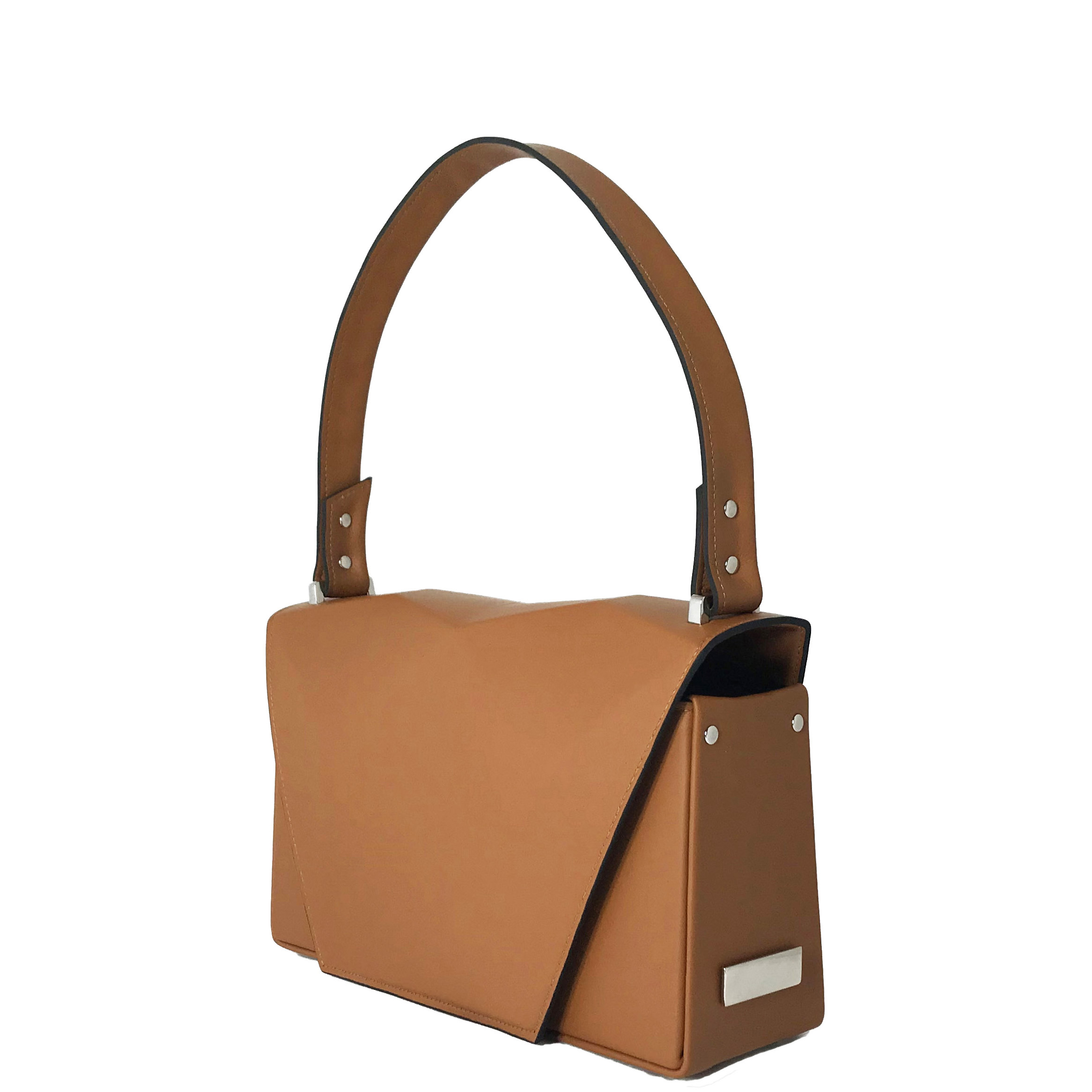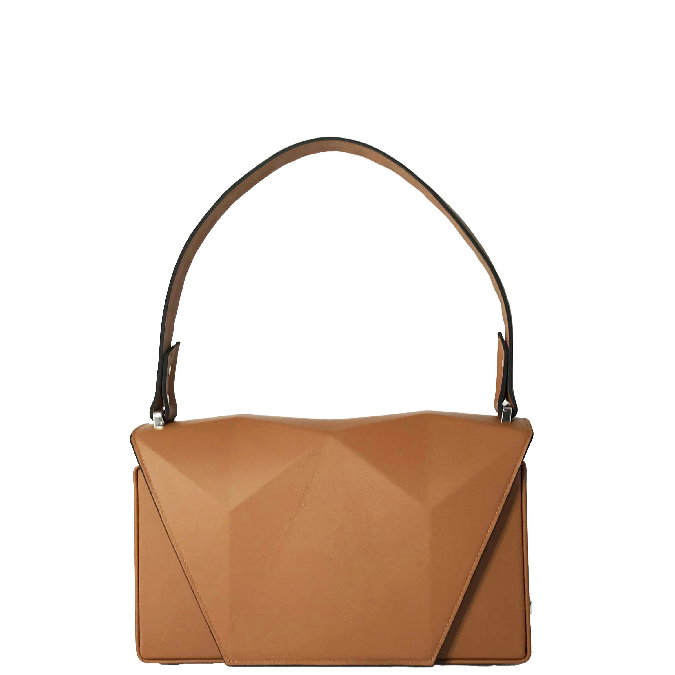 aro hand bag in sand nappa leather with nikel details and nikel zipper Inspired by Japanese origami, combined with contemporary, minimal design and created from the finest materials, the aro bag will uniquely complete your minimal outfit product details bag Length : 27.5cm Height : 16.5cm Depth : 9.5cm model Height : 1,67 m