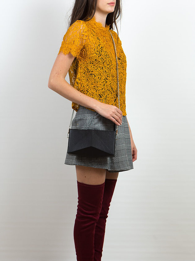 aro mini shoulder bag in vintage black leather with nikel details Inspired by Japanese origami, combined with contemporary, minimal design and created from the finest materials, the aro mini bag will uniquely complete your minimal outfit product details bag Length : 23.5cm Height : 12cm Depth : 7cm model Height : 1,67 m