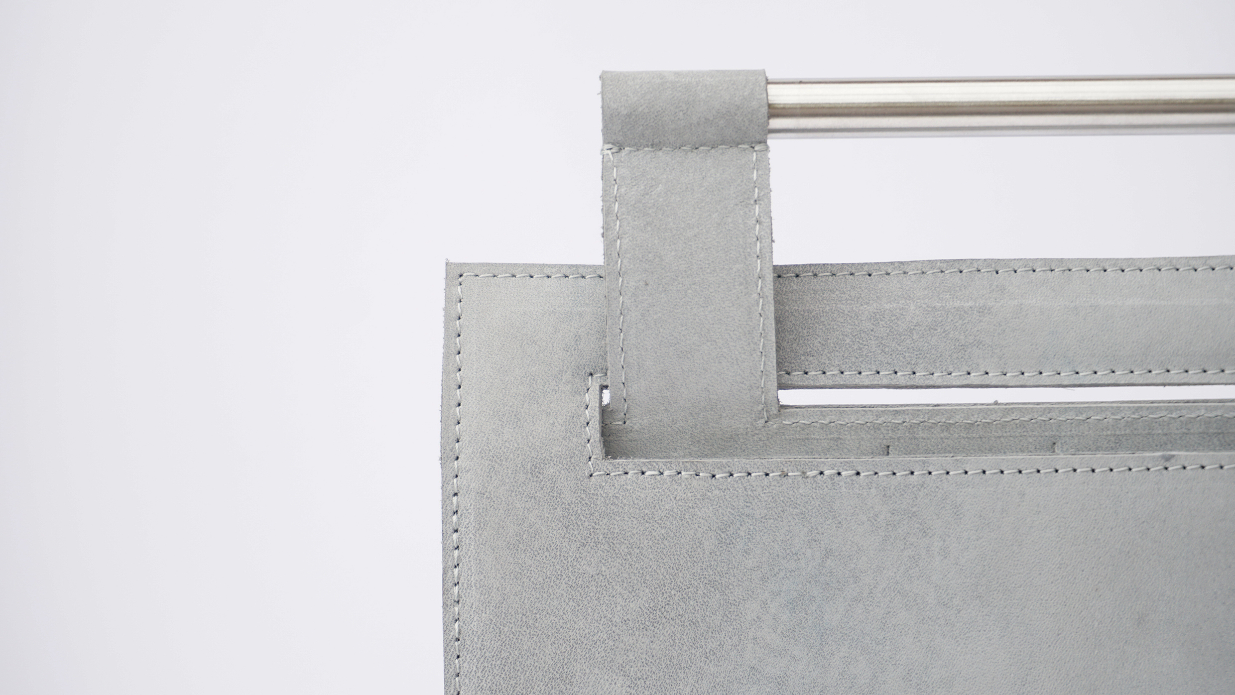 Size: (l) 23 cm x (w) 6 cm x (h) 21 cm Materials: leather, stainless steel Price: €310