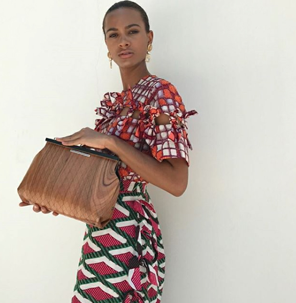 WOODEN MINI BAG GRACE - LIGHT BROWN AND GREEN