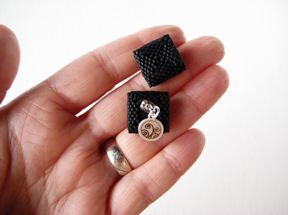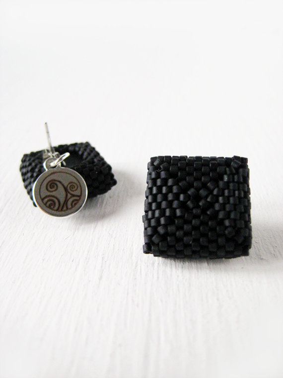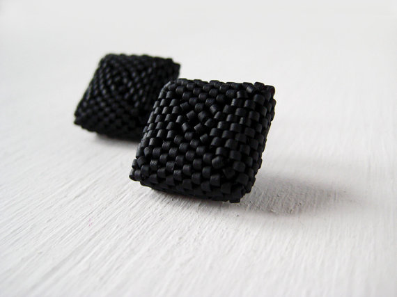 Square earrings CODE:EAR_SQR Square stud earrings in black matte. Perfect for going to work or to take a walk in the city To complete your outfit with a touch of color Ligth and easy to wear: you forget wearing these earrings, you′ll see ;) DETAILS I personally design and realize these earrings by hand in Italy. They are made sewing glass beads with Peyote-Herringone technique. Posteriorly refined with suede or faux leather. MATERIALS Stud earring: hypoallergenic steel -nickel free-, cylindrical glass beads in high quality DIMENSIONS Height 2 cm - 0.8 in Earring Weight 1 gr ► This product is made to order for you. The product you will receive may not be identical to the one in the picture although done with the same technique and the same materials. I will reproduce every single piece for you. You will receive a unique product; small differences or imperfections are a guarantee of an artisan product, authentic and original. ► The earrings will come to you in a black network bag, I suggest to store it there to always keep it in good shape. At the end of this page, I give you all the tips on how to take care of. ► If you want the same earring with the pin in sterling silver 925 or, if you want to customize this product in colors you can do by contacting me before placing your order. TO PRESERVE YOUR JEWEL: - do not expose too much to the sunlight - avoid the contact with detergent, cold cream, perfume or colored fabrics that could be discolored on it - clean the beads of stud earrings regularly with a soft and dry rag - clean the faux leather only with neutral detergents - keep in its original package - the fringes can be ironed at a low temperature, covered by a linen fabric. Please, take care not to iron the faux leather fabric too.
