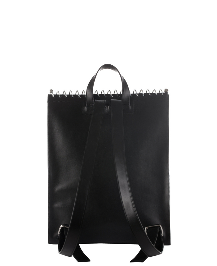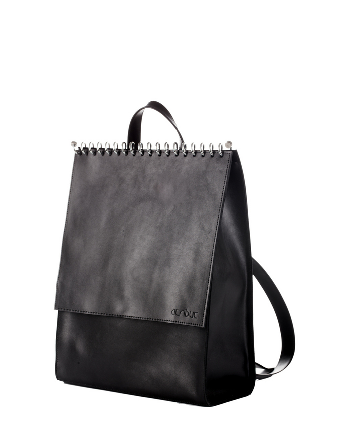 Large sized contemporary design backpack, detailed with a metallic spiral along the top, inspired from a simple notebook * one main compartment * goat leather lining * one interior pocket * laptop friendly - max. 13 inch * magnetic closure under in the flap Composition Exterior: 100% cow leather Lining: 100% goat leather Measurements: - width: 28 cm - height: 37 cm - depth: 10 cm - drop handle: 65 cm All atribut handbags are created using high quality materials. Due to its handmade nature the pattern placement may vary slightly ( if case) , giving your bag a unique feel! I try to do my best to represent the item′s true color in the pictures, but the colors may vary slightly due to differences in monitor calibrations. Please allow up to 3-5 business days for your order to be produced