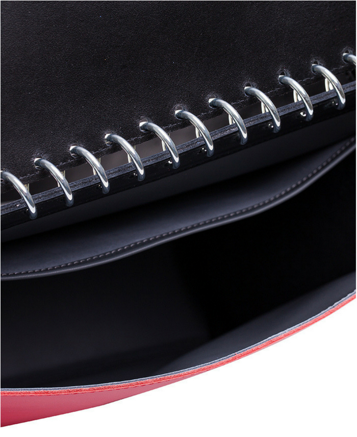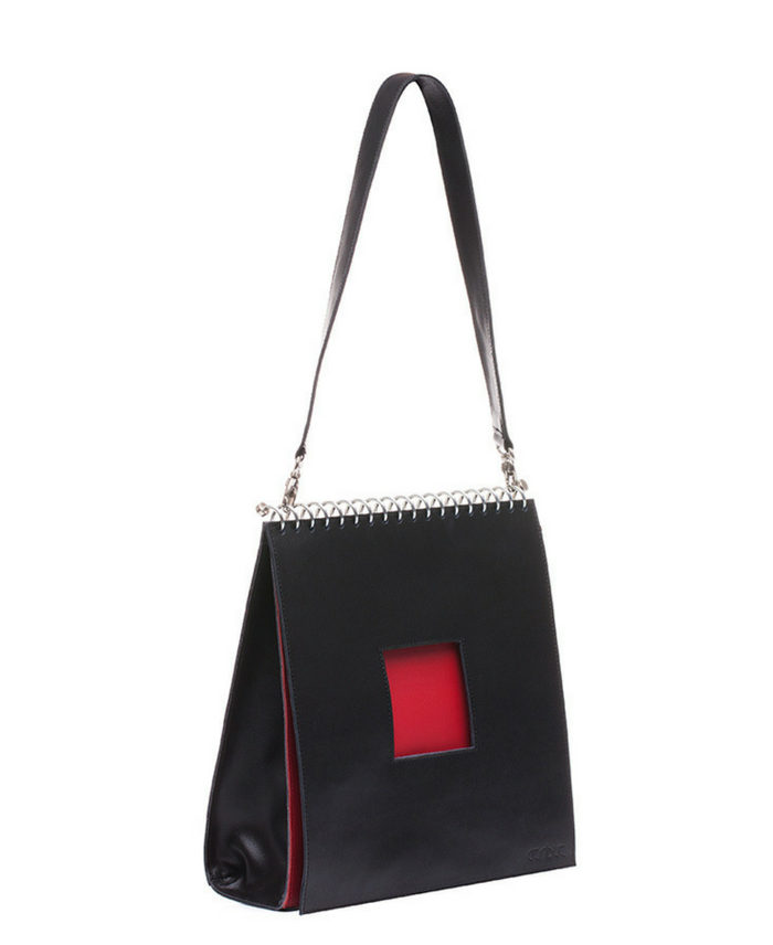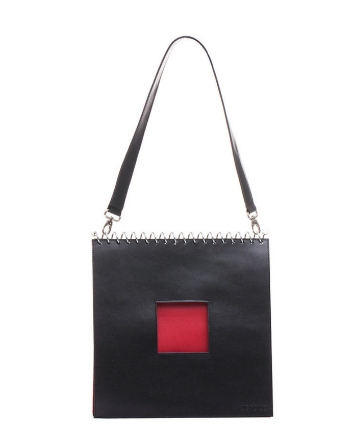 Medium sized minimalist shoulder bag, detailed with a metallic spiral and a decoupage on the front flap. Contemporary design meets functionality creating a bag with minimalist, compact silhouette. * one main compartment * goat leather lining * one interior pocket * magnetic closure under in the flap Composition Exterior: 100% cow leather Lining: 100% goat leather Measurements: - width: 28 cm - height: 28 cm - depth: 10 cm - drop handle: 65 cm All atribut handbags are created using high quality materials. Due to its handmade nature the pattern placement may vary slightly ( if case) , giving your bag a unique feel! I try to do my best to represent the item′s true color in the pictures, but the colors may vary slightly due to differences in monitor calibrations. Please allow up to 3-5 business days for your order to be produced