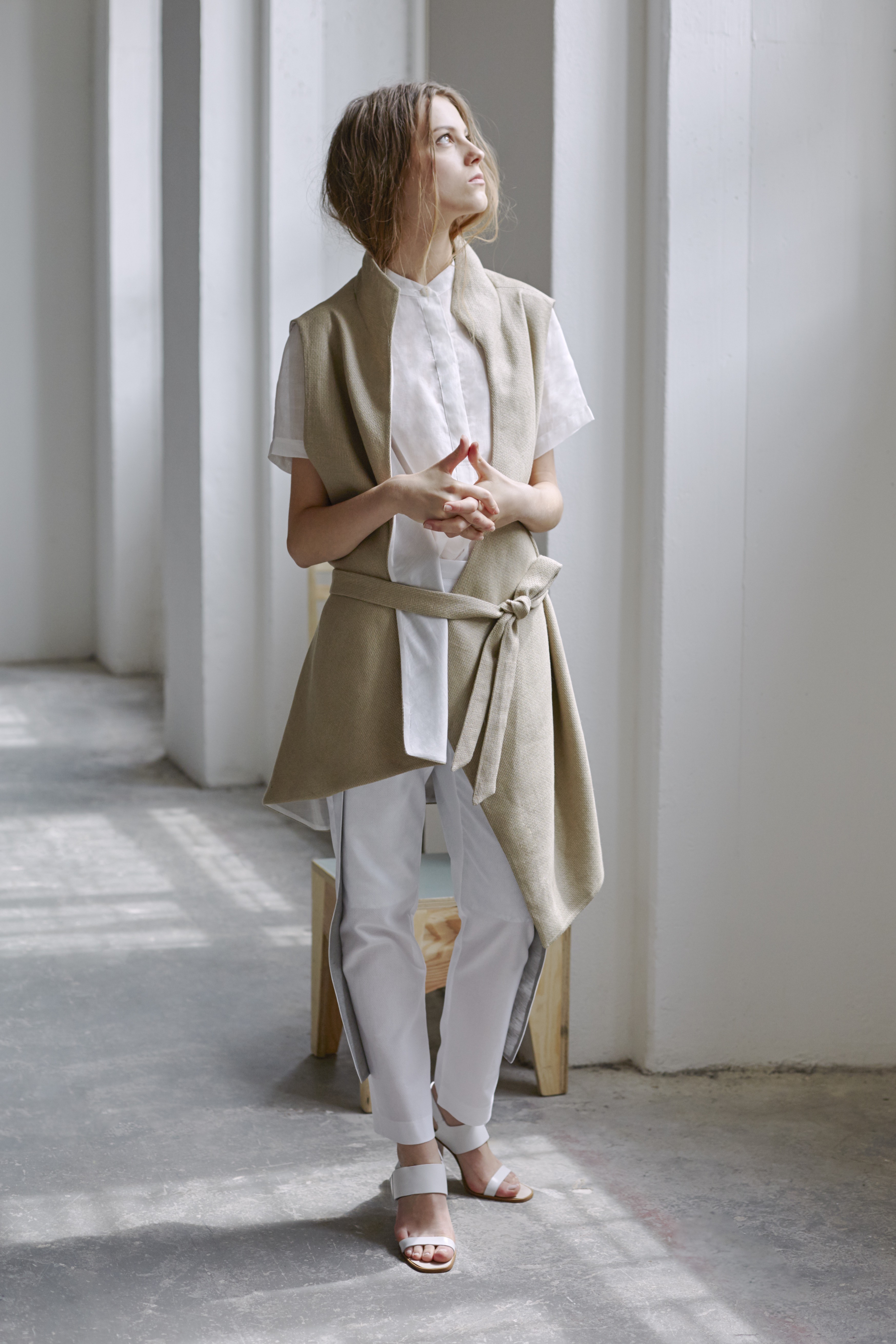 The Dvaita Kimono Gilet, an adaptation of the original Kimono Coat introduced as a double-face piece. Construction in eco-certified true hemp with low environmental impact dyeing techniques and organic cotton and silk blend muslin. Code: B2DV08S_22SJ 100% true hemp 70% organic cotton 30% organic silk The colour palette remains an exploration of crystal and earth tones. Each BAV TAiLOR colour reflects the vision to empower healing energy to the bearer of each piece. respect your body + your sphere