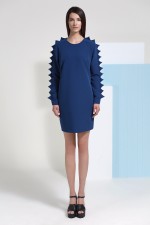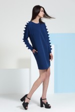 Dress with an unique design, reproduced by the geometric elements on the sleeves. This creation is appropriate for a woman who wants to get out of classical patterns, accessing the futuristic fashion dimension.