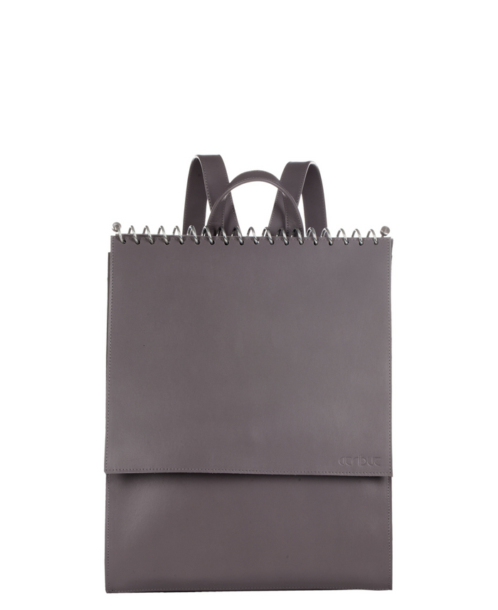 Large sized contemporary design backpack, detailed with a metallic spiral along the top, inspired from a simple notebook * one main compartment * goat leather lining * one interior pocket * laptop friendly - max. 13 inch * magnetic closure under in the flap Composition Exterior: 100% cow leather Lining: 100% goat leather Measurements: - width: 28 cm - height: 37 cm - depth: 10 cm - drop handle: 65 cm All atribut handbags are created using high quality materials. Due to its handmade nature the pattern placement may vary slightly ( if case) , giving your bag a unique feel! I try to do my best to represent the item′s true color in the pictures, but the colors may vary slightly due to differences in monitor calibrations. Please allow up to 3-5 business days for your order to be produced