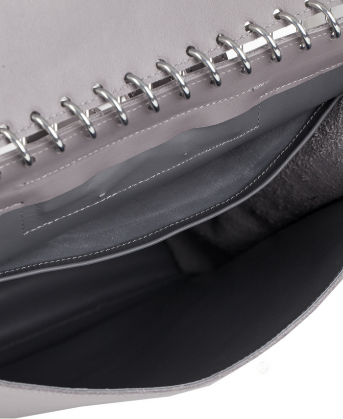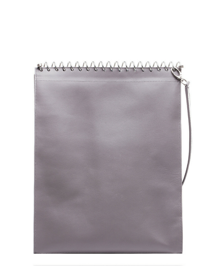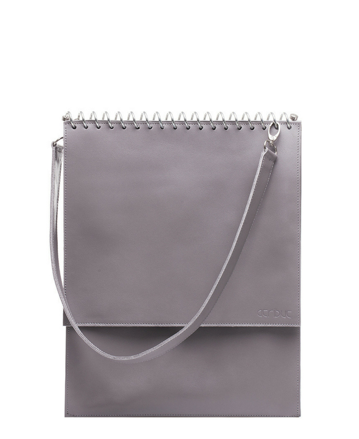 Large sized contemporary design shoulder bag, detailed with a metallic spiral along the top, inspired from a simple notebook * one main compartment * goat leather lining * one interior pocket * laptop friendly - max. 13 inch * magnetic closure under in the flap Composition Exterior: 100% cow leather Lining: 100% goat leather Measurements: - width: 28 cm - height: 37 cm - depth: 10 cm - drop handle: 65 cm All atribut handbags are created using high quality materials. Due to its handmade nature the pattern placement may vary slightly ( if case) , giving your bag a unique feel! I try to do my best to represent the item′s true color in the pictures, but the colors may vary slightly due to differences in monitor calibrations. Please allow up to 3-5 business days for your order to be produced