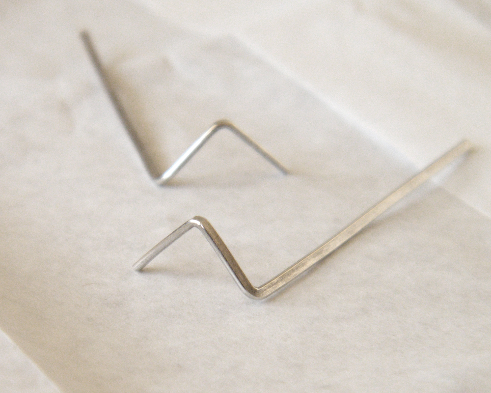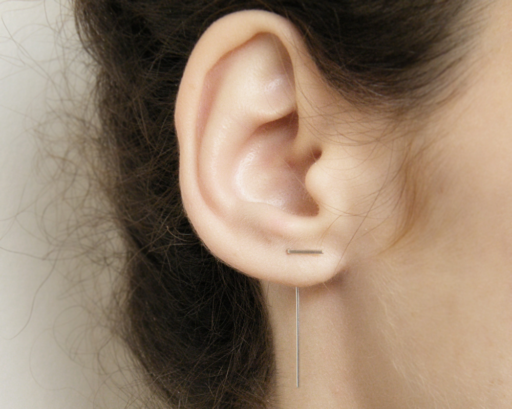 These silver line earrings are made of sterling silver flat wire. The length is 3 cm- 1.18 in. Please choose YOUR thickness of the wire is 0.8 mm- 20 gauge (regular size and fits to most earholes) or 1mm - 18 gauge. If you would like another length, please write me! ***Pictures with ears show earrings in 0.8 mm- 20 gouge thickness. This listing is for one pair (2 earrings) including sterling silver ear backs and a gift box