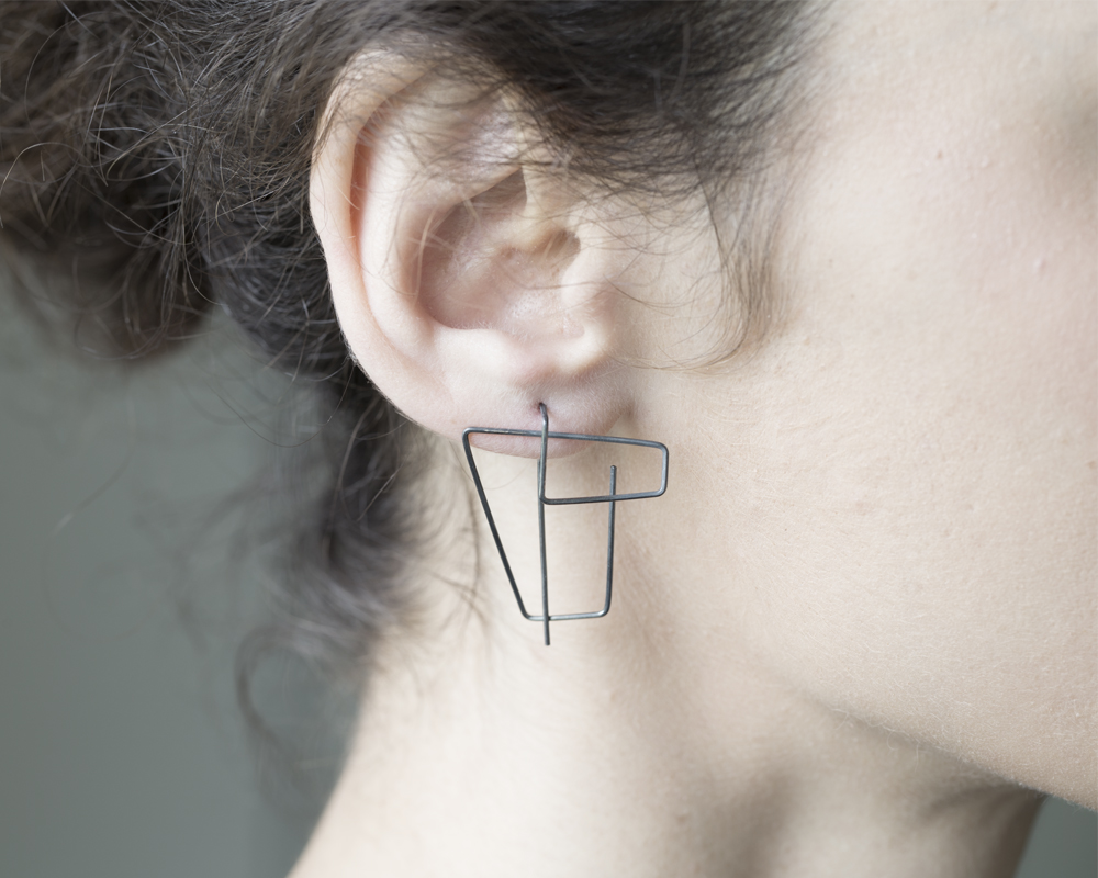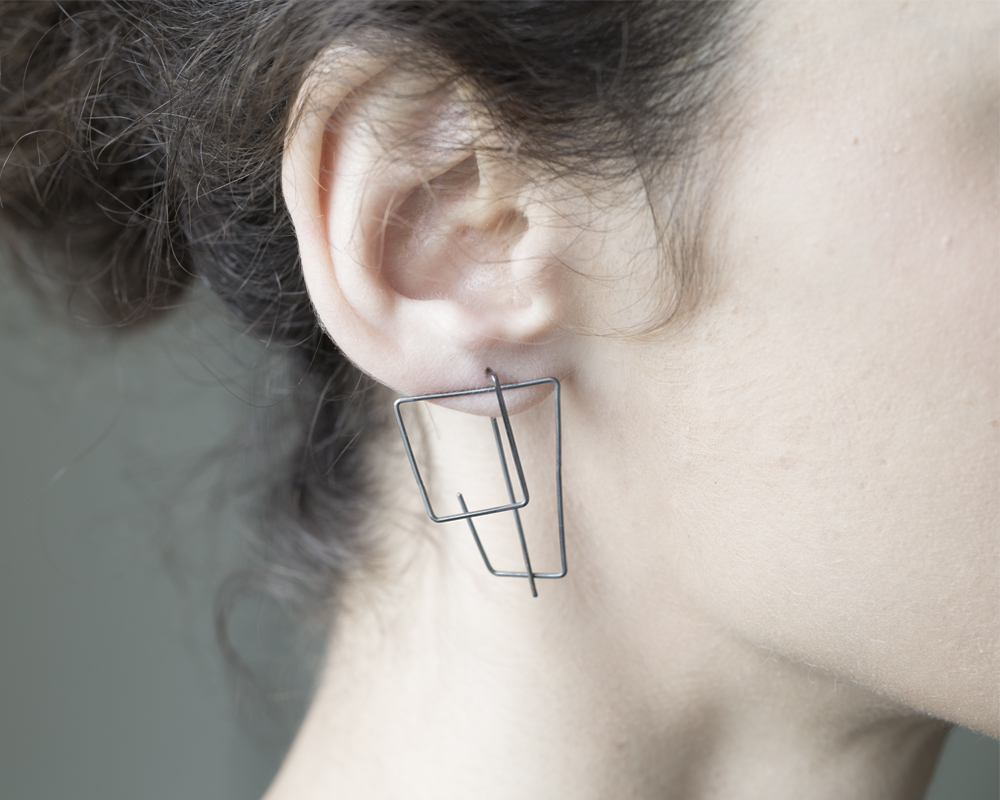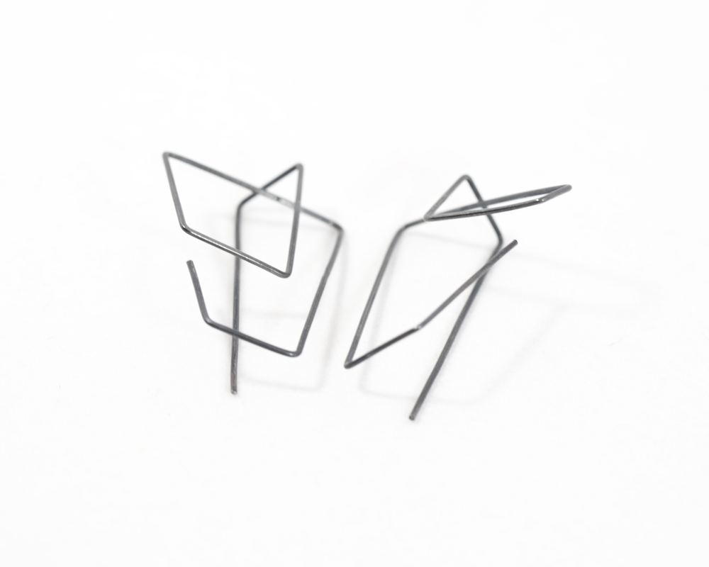 These silver line earrings made of sterling silver 0.8 mm flat wire. The length is 3.5 cm= 1.37 inch. The left and the right earrings are different from each other which makes it interesting. Comes in genuine sterling silver - bright finish or dark oxidized and yellow or rose gold filled 14k. This listing is for one pair (2 earrings) including a gift box