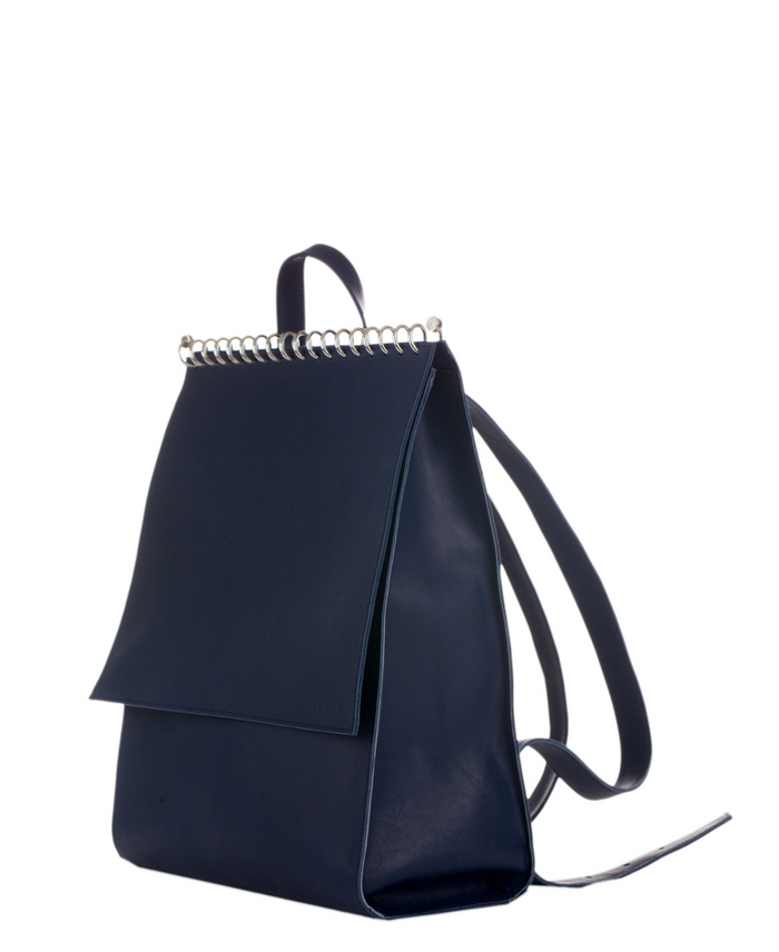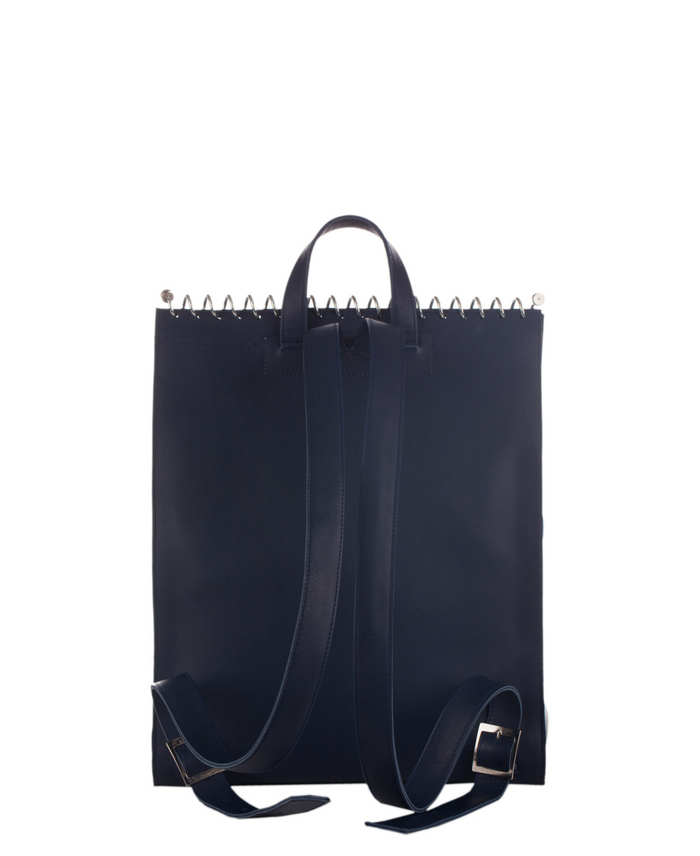 Large sized contemporary design backpack, detailed with a metallic spiral along the top, inspired from a simple notebook * one main compartment * goat leather lining * one interior pocket * laptop friendly - max. 13 inch * magnetic closure under in the flap Composition Exterior: 100% cow leather Lining: 100% goat leather Measurements: - width: 28 cm - height: 37 cm - depth: 10 cm - drop handle: 65 cm All atribut handbags are created using high quality materials. Due to its handmade nature the pattern placement may vary slightly ( if case) , giving your bag a unique feel! I try to do my best to represent the item′s true color in the pictures, but the colors may vary slightly due to differences in monitor calibrations. Please allow up to 3-5 business days for your order to be produced