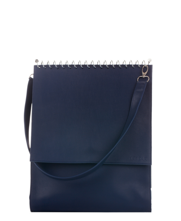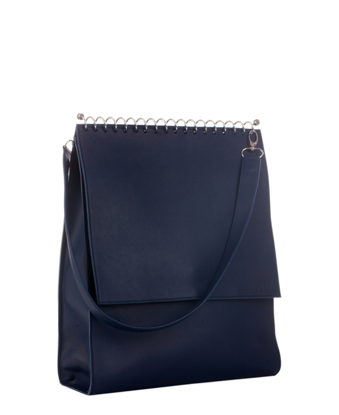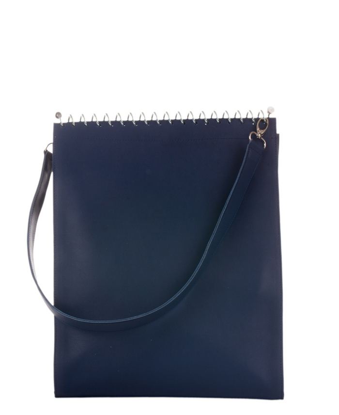 Large sized contemporary design shoulder bag, detailed with a metallic spiral along the top, inspired from a simple notebook * one main compartment * goat leather lining * one interior pocket * laptop friendly - max. 13 inch * magnetic closure under in the flap Composition Exterior: 100% cow leather Lining: 100% goat leather Measurements: - width: 28 cm - height: 37 cm - depth: 10 cm - drop handle: 65 cm All atribut handbags are created using high quality materials. Due to its handmade nature the pattern placement may vary slightly ( if case) , giving your bag a unique feel! I try to do my best to represent the item′s true color in the pictures, but the colors may vary slightly due to differences in monitor calibrations. Please allow up to 3-5 business days for your order to be produced