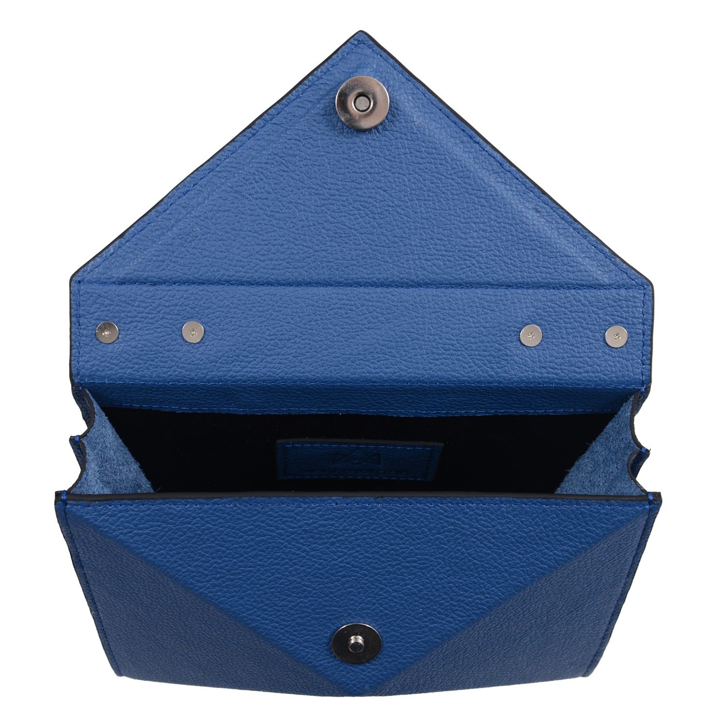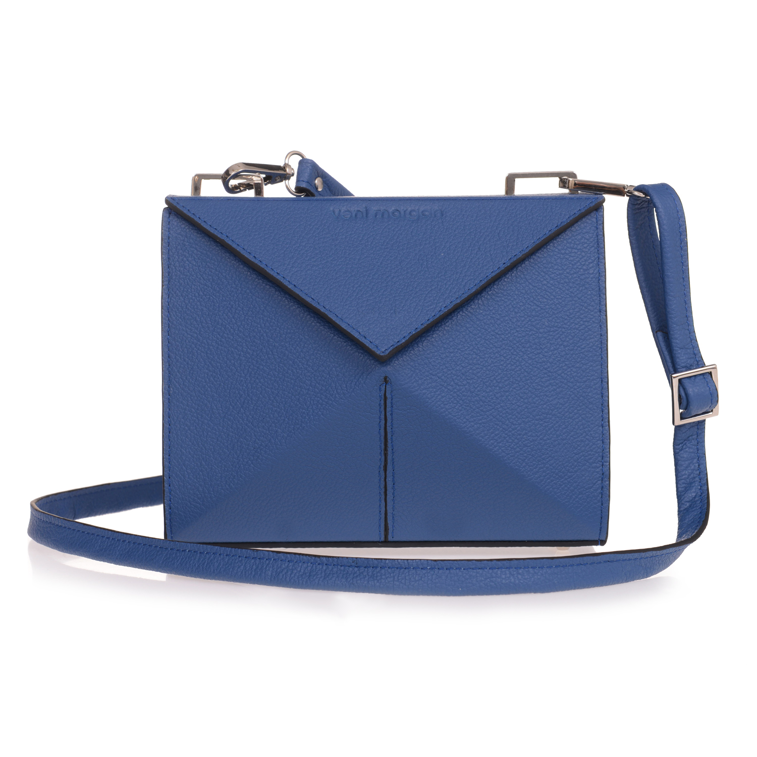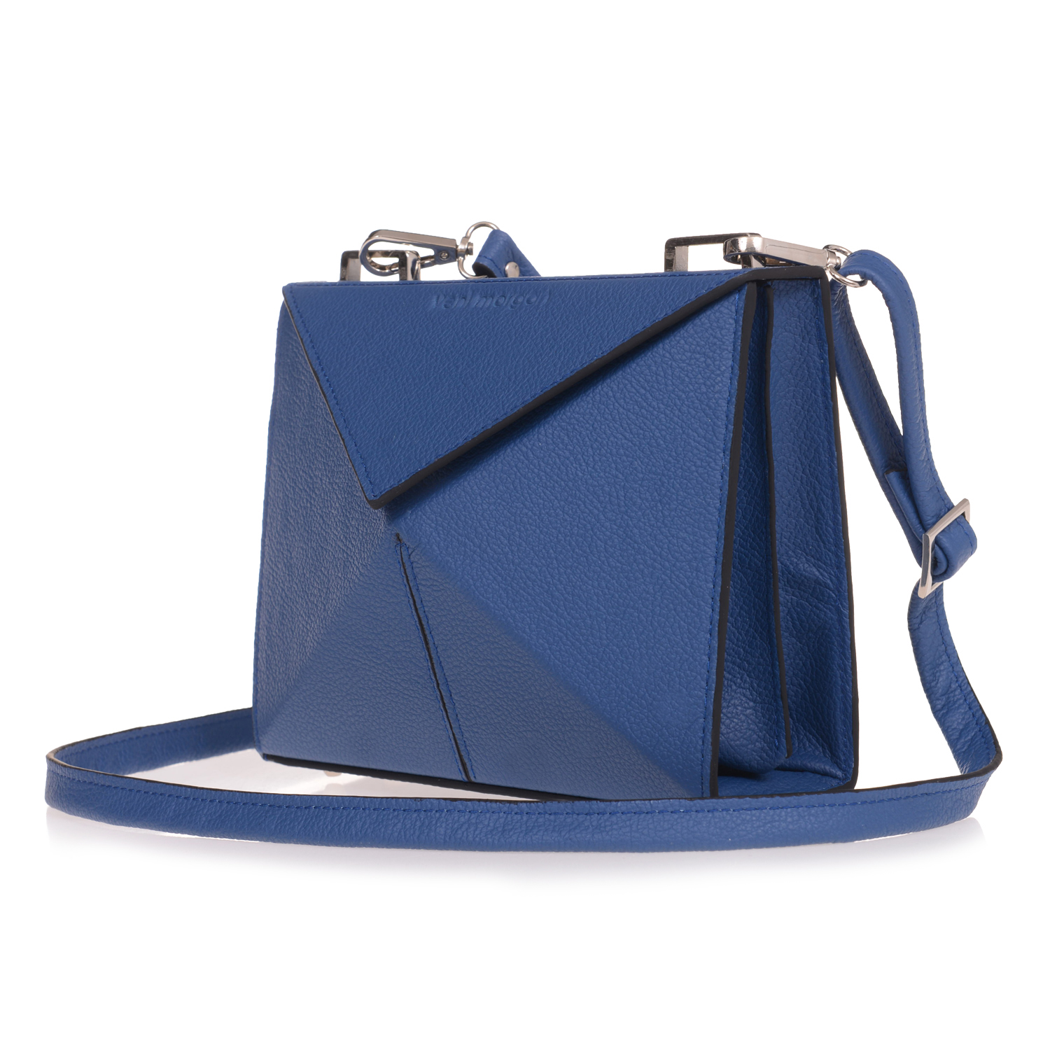 noshi shoulder bag in blue leather with nikel details Inspired by Japanese origami, combined with contemporary, minimal design and created from the finest materials, the noshi bag will uniquely complete your minimal outfit product details bag Length : 22cm Height : 12.5cm Depth : 6.5cm model Height : 1,77 m