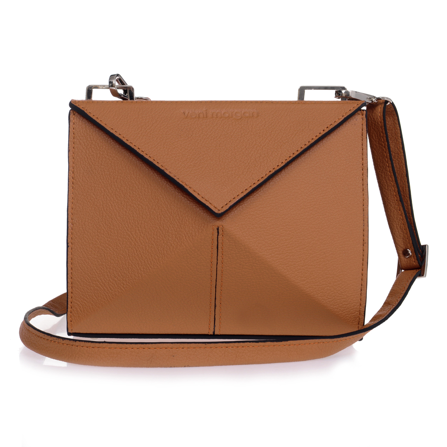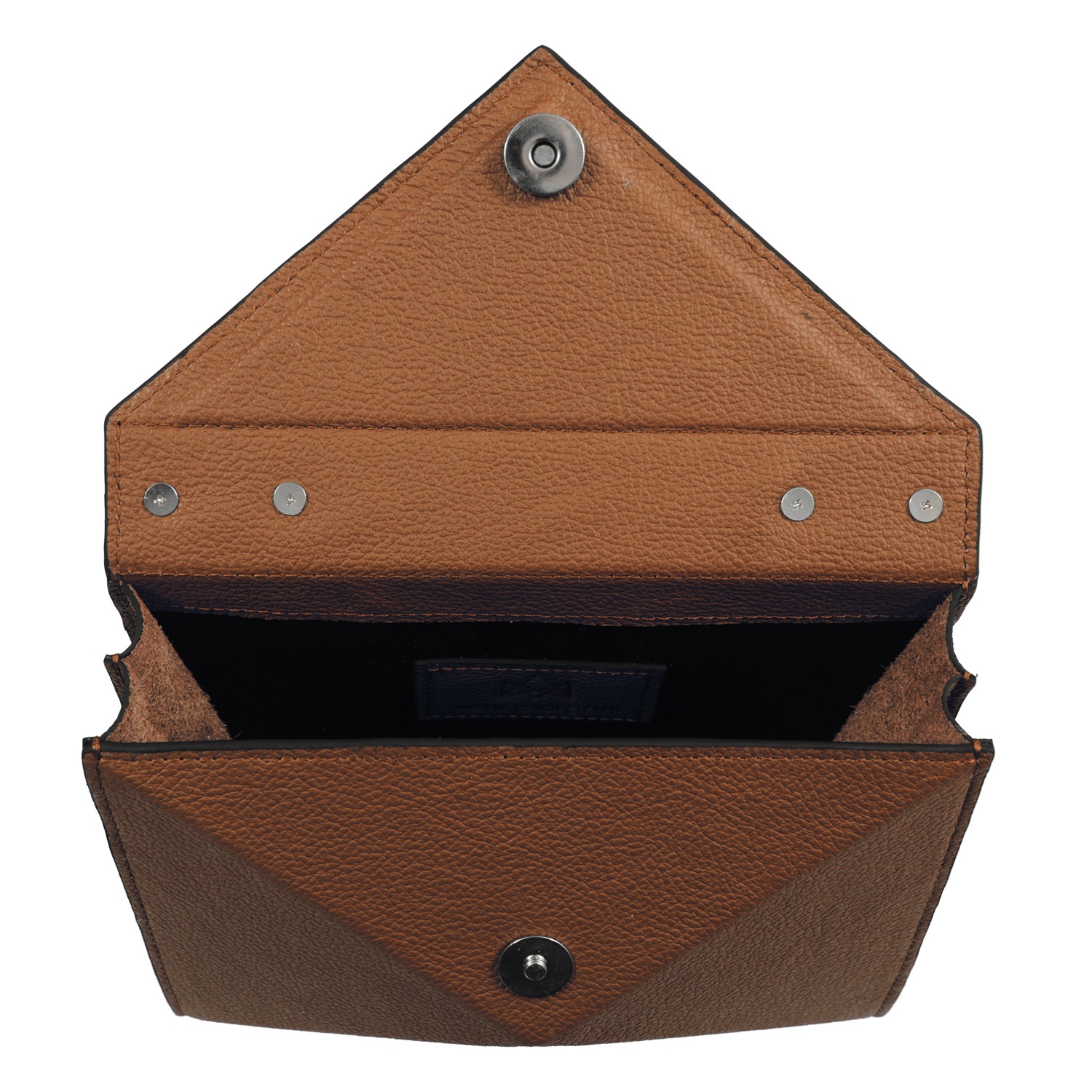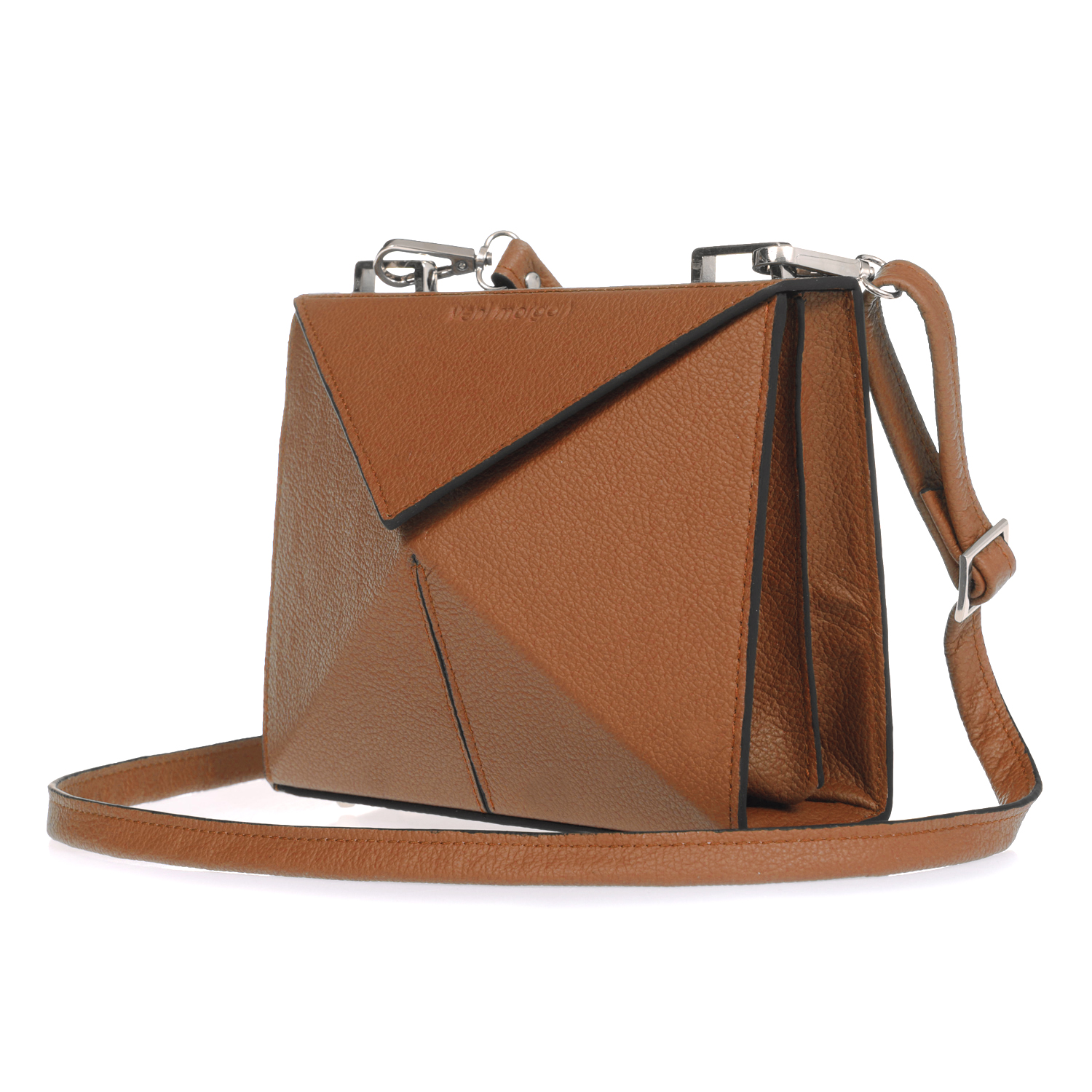 noshi shoulder bag in brown leather with nikel details Inspired by Japanese origami, combined with contemporary, minimal design and created from the finest materials, the noshi bag will uniquely complete your minimal outfit product details bag Length : 22cm Height : 12.5cm Depth : 6.5cm model Height : 1,77 m