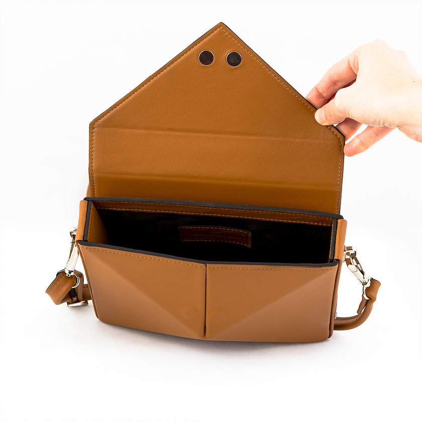 noshi shoulder bag in sand nappa leather with nikel details Inspired by Japanese origami, combined with contemporary, minimal design and created from the finest materials, the noshi bag will uniquely complete your minimal outfit product details bag Length : 22cm Height : 12.5cm Depth : 6.5cm model Height : 1,67 m
