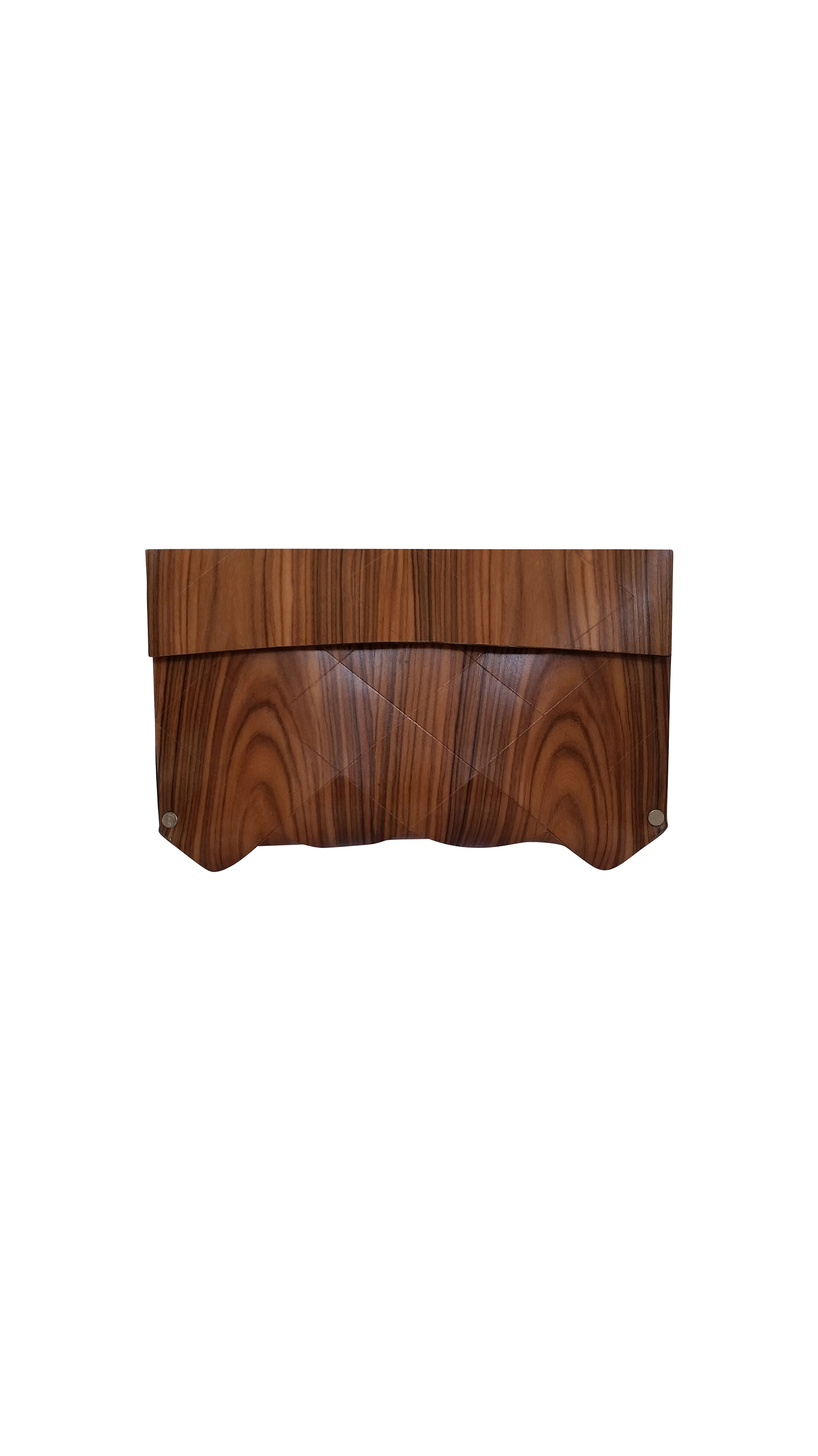 ORIGAMI CLUTCH IN WOOD, MADE IN ITALY. This Clutch is ready to ship in 5 days Handmade wood clutch constructed from 100% wood of ROSEWOOD This wood is highly prized for furniture production. is a medium hard wood, for this reason, it undergoes a special treatment which makes it workable Each bag we have created is a statement of art with a contemporary and minimalist. The large version of our clutch will surprise you by giving you a unique look! The geometric underbelly of the clutch provides flexibility and softness for a comfortable grip while the surface is sturdy and wear-resilient. The lining is made of black strong eco leather made in Italy. Inside: the lining is made of black strong eco leather. The wood is a natural product, each clutch will differ slightly and no two will ever be identical. ✩ DIMENSIONS: Width: 30 cm Height: 18 cm Depth: 8 cm weight: 250 gr ✩ FINISH: ecological gloss painting ✩ COLOR OF WOOD: ROSEWOOD