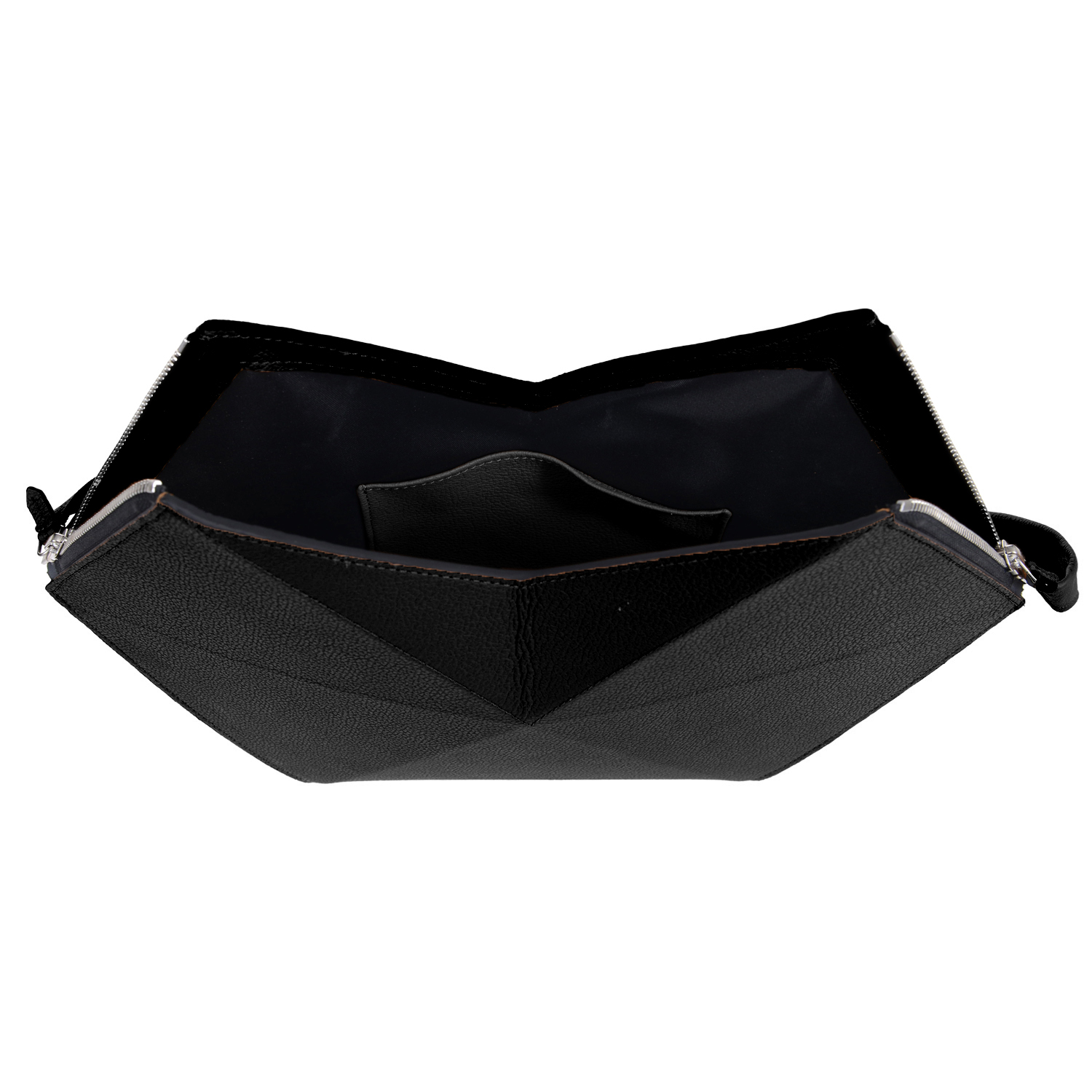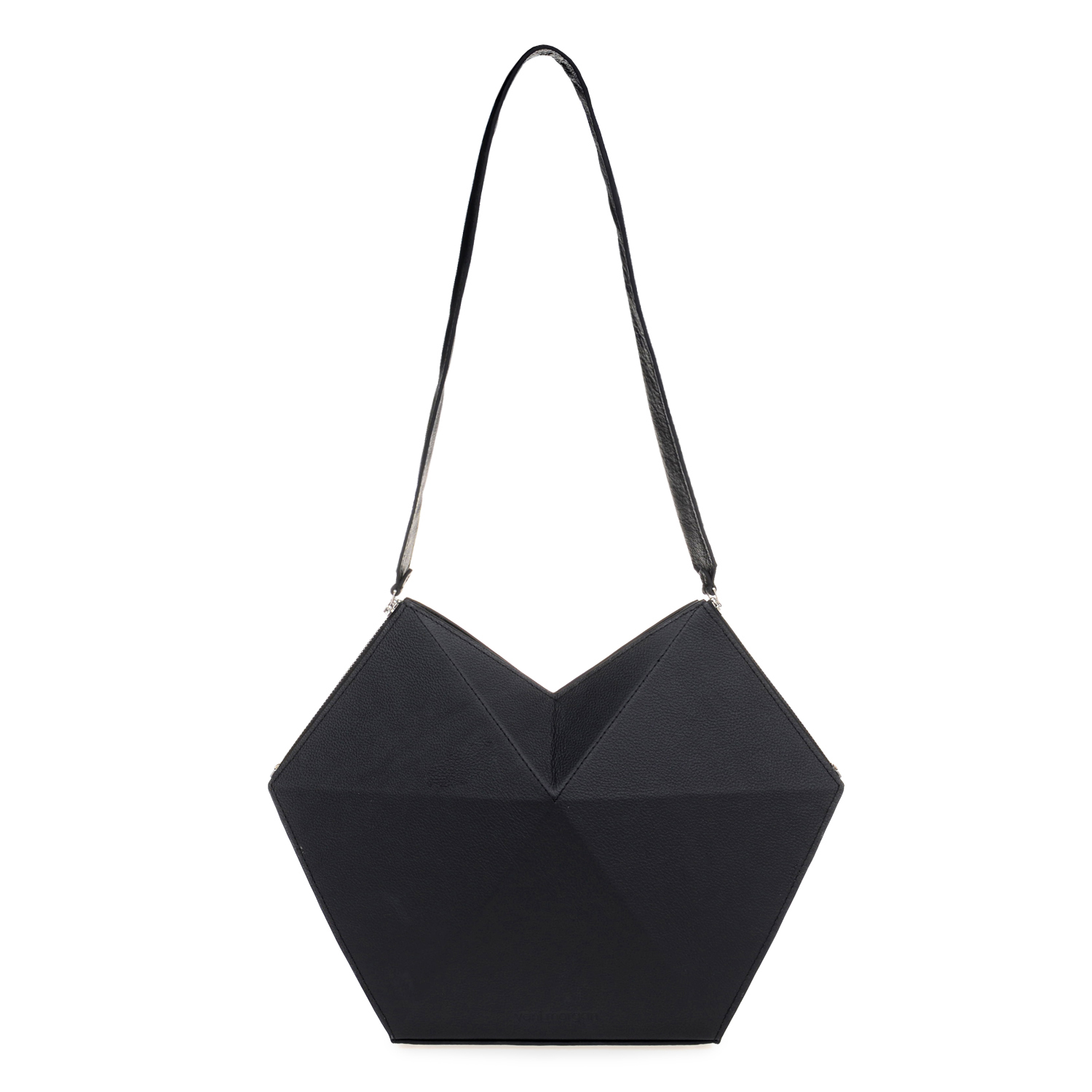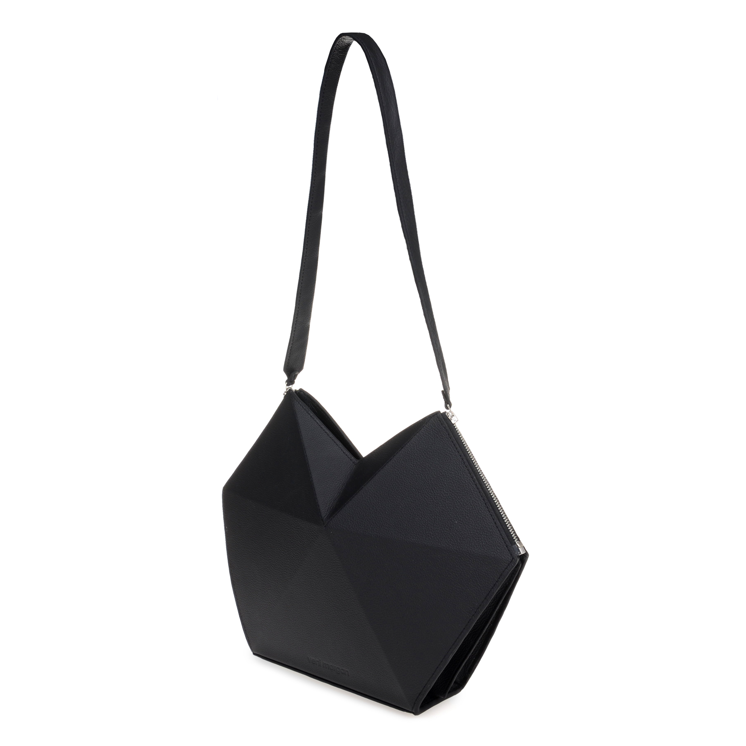 peta shoulder bag in black leather with nikel details and two nikel zippers Inspired by Japanese origami, combined with contemporary, minimal design and created from the finest materials, the noshi bag will uniquely complete your minimal outfit product details bag Length : 38cm Height : 28cm Depth : 10cm model Height : 1,77 m