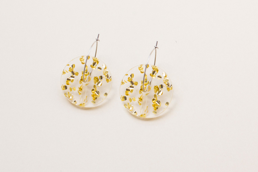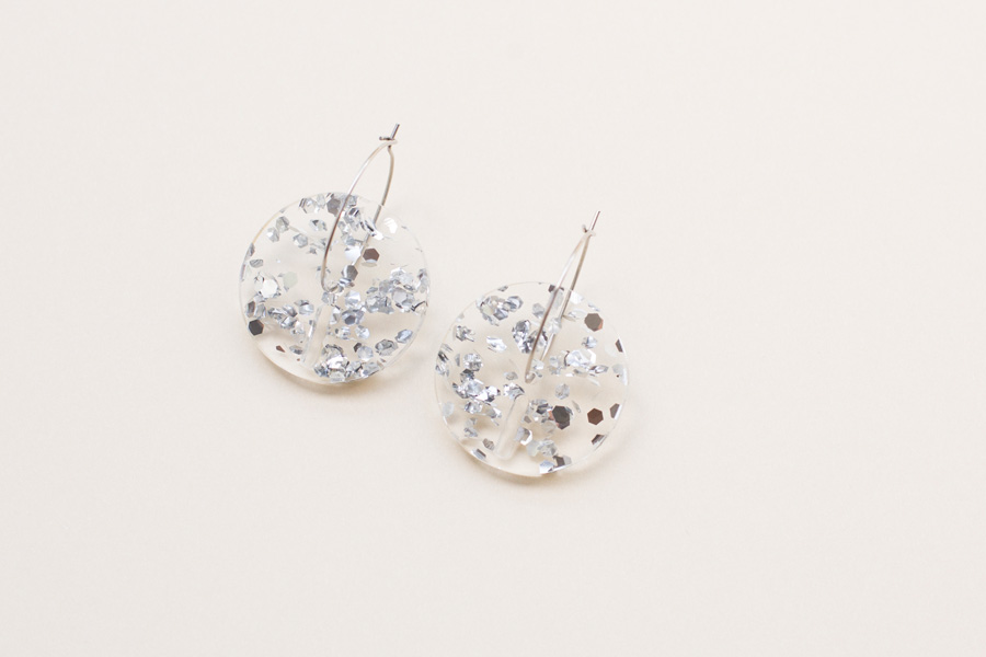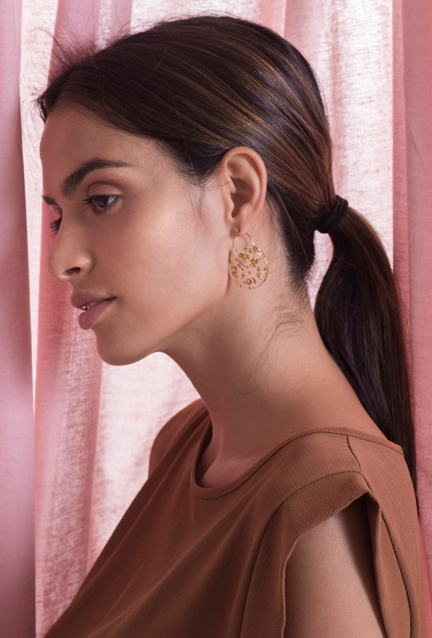 Add a soft touch of color to your everyday look with this simple yet significant piece. Materials: Made of high quality cast acrylic 3mm and ø25mm Surgical Stainless Steel hoop (hypoallergenic) Dimensions: ø25mm Weight: 2.5gr unit Ethically made in Europe Made mostly of recycled PMMA