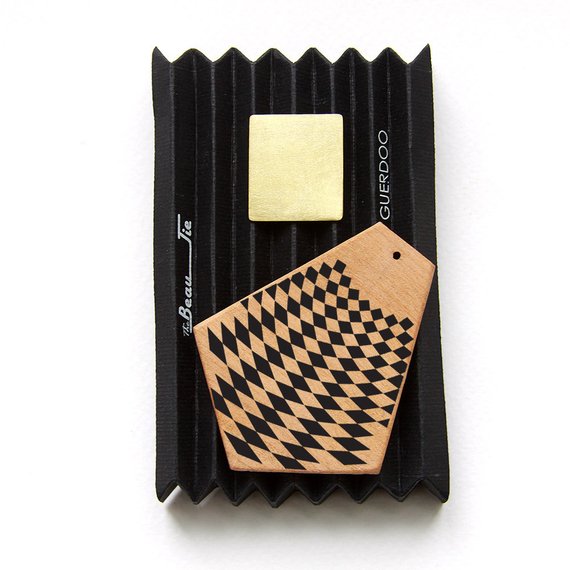 Created from “The Beau-Tie” Collection, these double sided wooden earrings are made of two separate components. First, the geometrical metal stud earrings in Silver or Brass designed by Guerdoo and made by a jewelry designer based in Montreal. They come in four geometrical simple shapes to create timeless and elegant pieces which can be worn alone in different formal or informal occasions. Second, is the wooden wings, in four different models, designed by Guerdoo and made by a Custom Electric Guitar Artist based in Montreal. All wood pieces are reclaimed from the remaining of his Guitars’ production, carefully cut and hand crafted at his workshop. Each piece will be assembled and ready to use at Guerdoo Design Studio. Proudly made in Montreal, Canada, our Earring collection introduces a fresh approach towards how one can use an accessory: Each wooden piece has two different sides, both can be used due to the separable components, one side with a unique geometrical black patterns on the wood finishing background, and the other as a plain natural wood finish. This allows you to have more than six mix and match possibilities to wear the earrings. It will give you the choice of having so many earrings by just having one pair! Our goal is to create a design that is comfortable, unique and most importantly undefeated by the force of Time! Please contact us for any questions, concerns, large orders, customer service, or feedback.