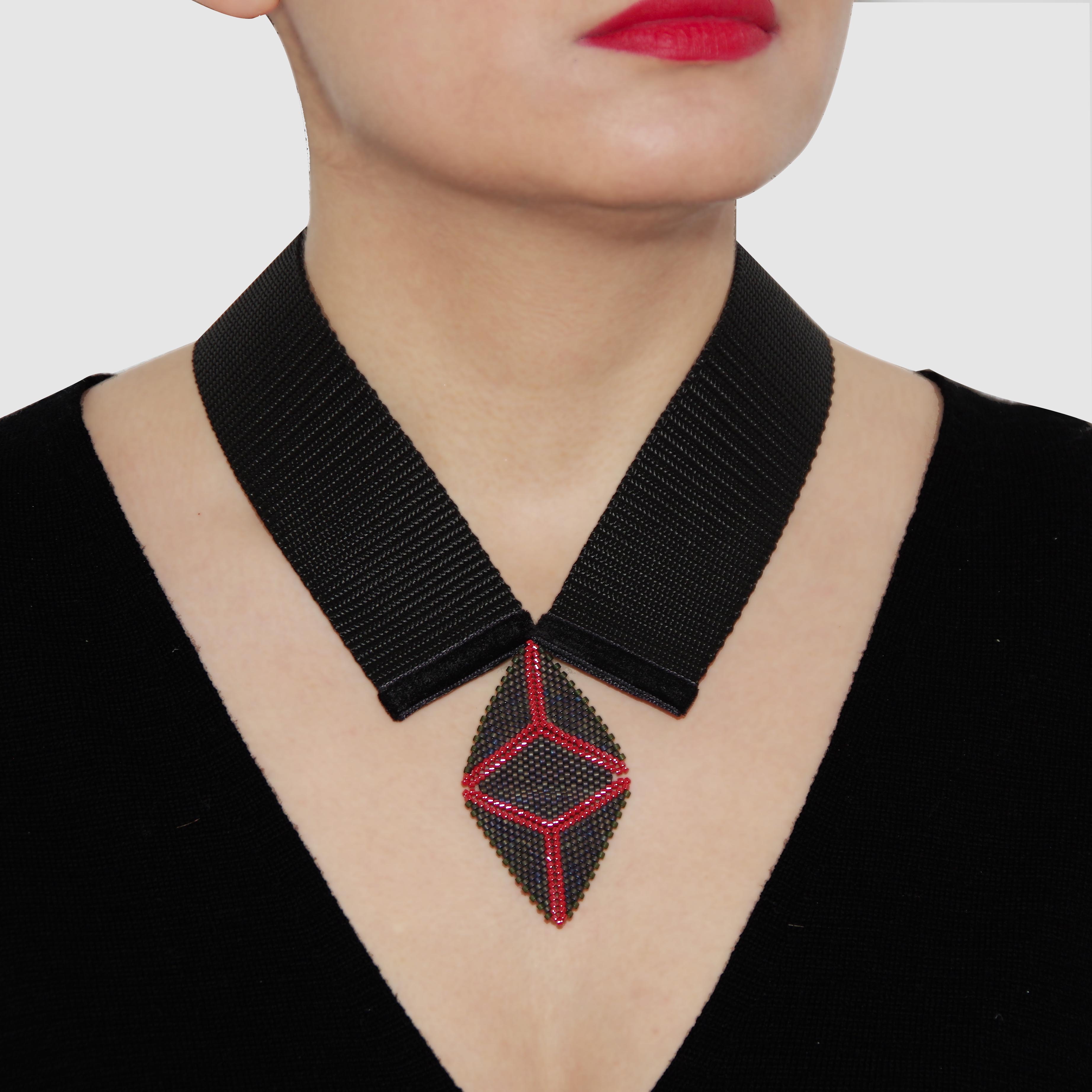 Collar like necklase with minimal design made with Toho beads, the most precise and smallest existing beads. The pendant size 70 x40 mm The band length 220 mm + 70 mm chain