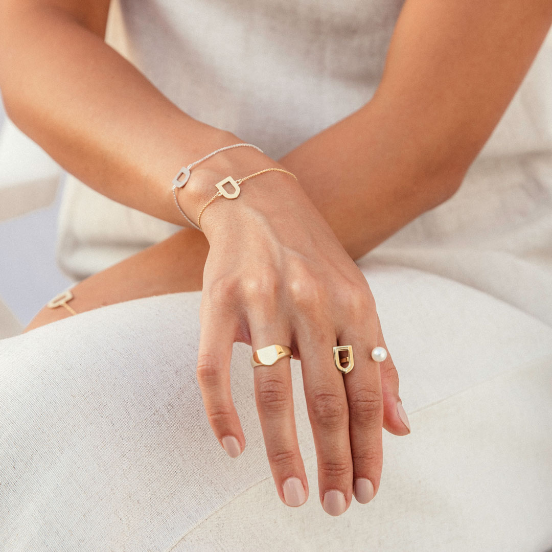 Inspired by Iran′s ancient architecture ″Sahra″ by Sheida Farrokhi couples Persian roots with modern day fashion. Material: 18k Yellow Gold Width: 8.5mm Length: 12mm Thickness: 1mm Weight: 2.6gr