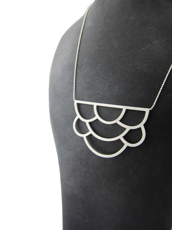 SCALE collection Statement silver necklace with a matt surface. 50cm silver ball chain (up to 70cm if you want black or white). I make the necklace once its been ordered and takes me around a week to make and send, depending on other orders in line. Size: W: 6cm H: 4.5cm Thickness 2mm. Silver 1.2mm ball chain - choose black (oxidized) or silver. Made by Malin Jansson