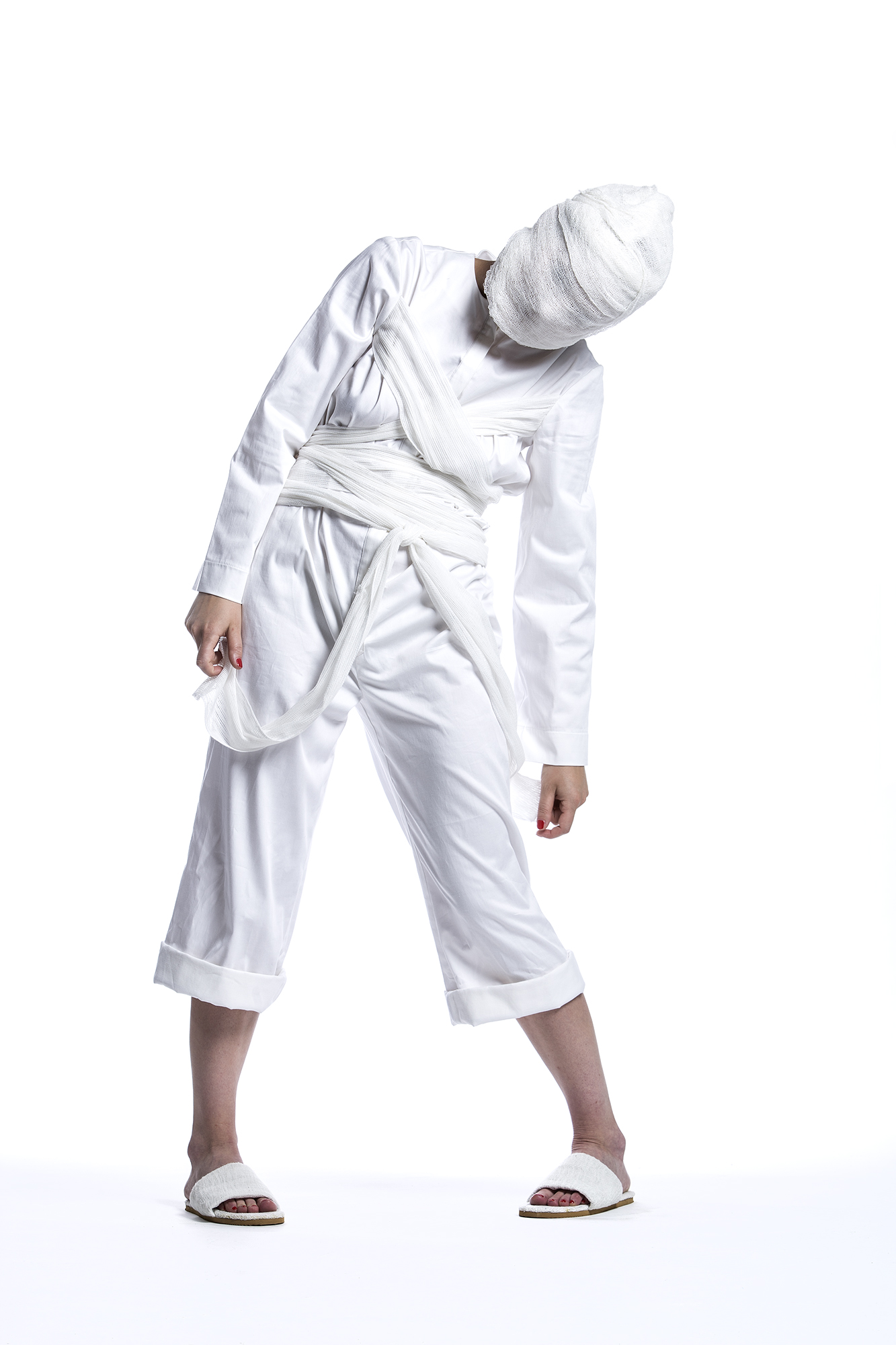 This product made of cotton fabric with bandage that came from sleeves.