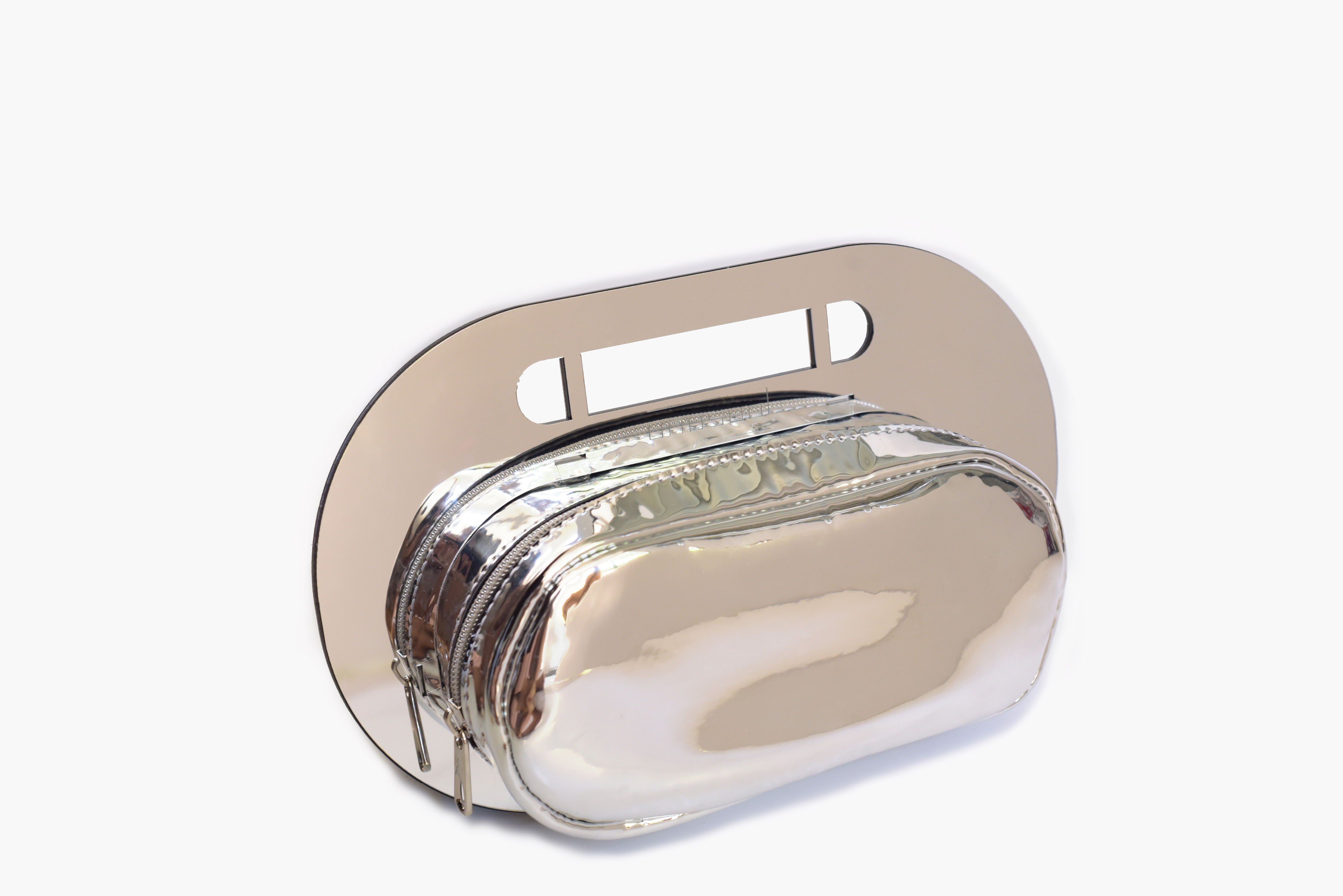 May fortune follows you like Tyche- The Goddess of Fortune- with our Silver Universe Fillet Bag. Free, Beautiful and most important Unusual. Attention is guaranteed! Attached to the Mirrored Plexiglass Front&Back is Imitation Leather Plexiglass Frame Radius 27 cm Bag Radius is 20,5 cm