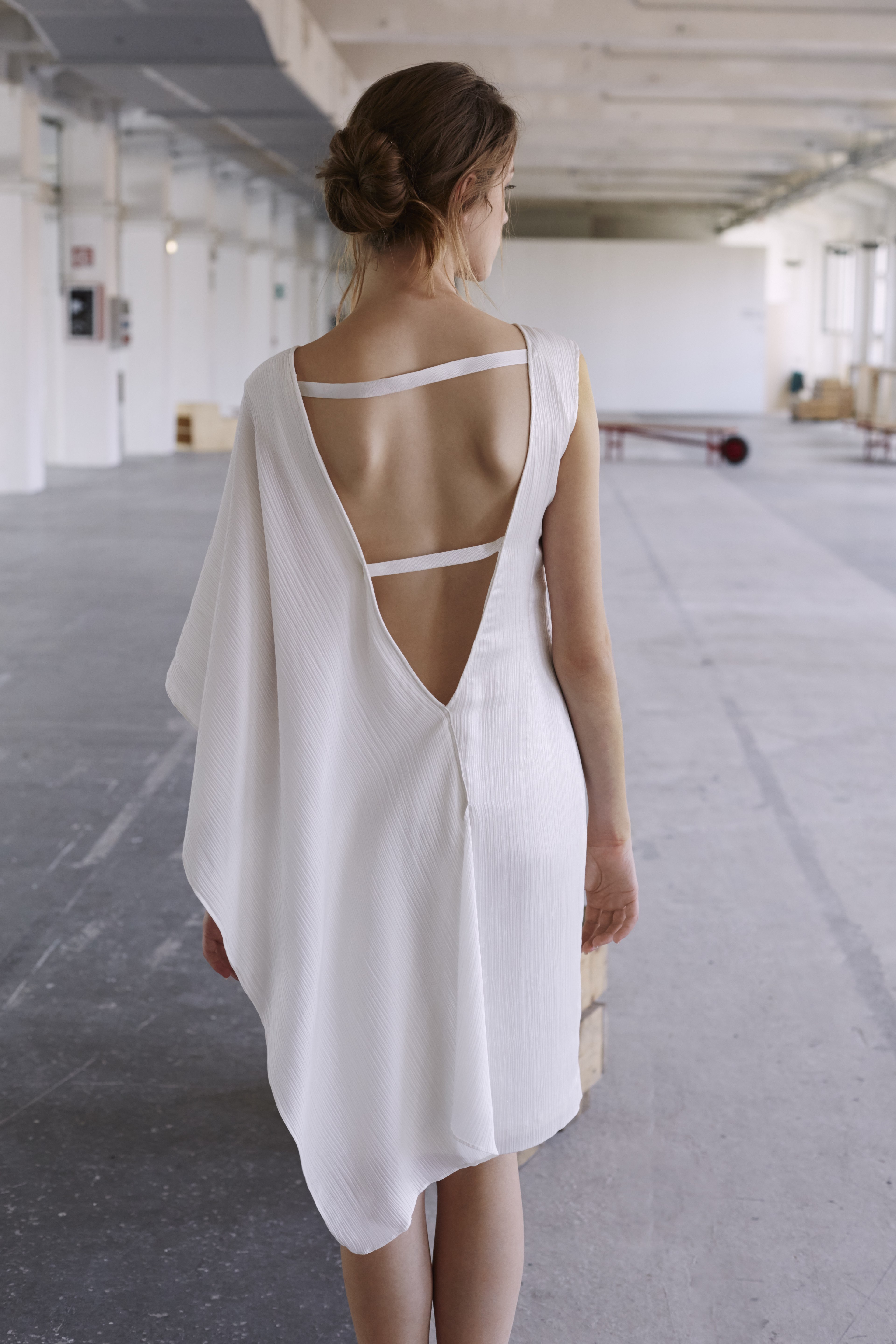 The Suci Sari Dress represents lightness and linearity. Inspired by the Indian Sari, the piece is created using an eco-certified organic silk crepon produced in an eco-sustainable supply chain. Construction includes a panel that elegantly drapes along the shoulder. Lining in newlife™, an eco-certified fabric spun from recycled plastic bottles with properties such as antibacterial, breathability and UV protection. Code: B1SU24_21BO 100% organic silk crepon lining • 100% newlife™ The colour palette remains an exploration of crystal and earth tones. Each BAV TAiLOR colour reflects the vision to empower healing energy to the bearer of each piece. respect your body + your sphere