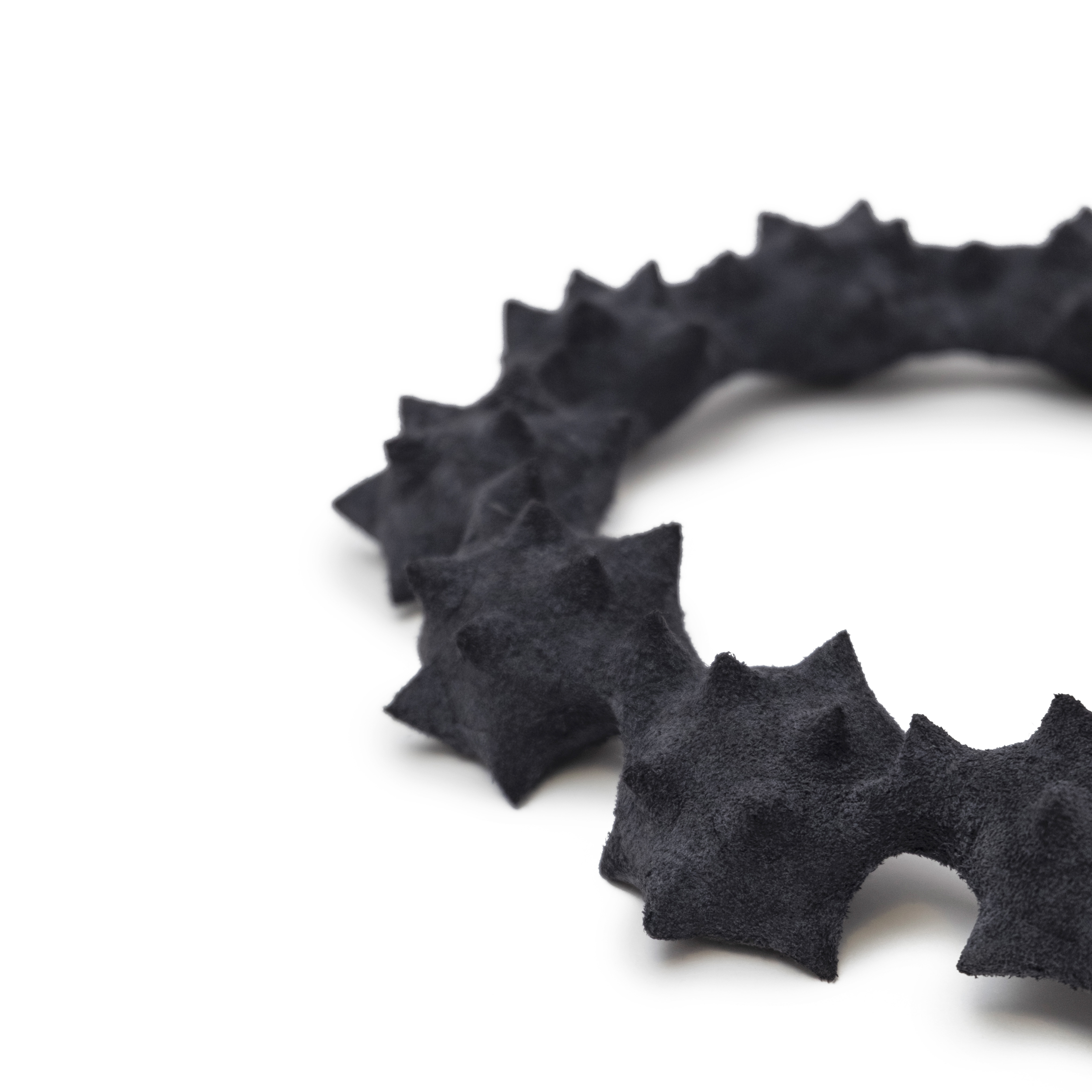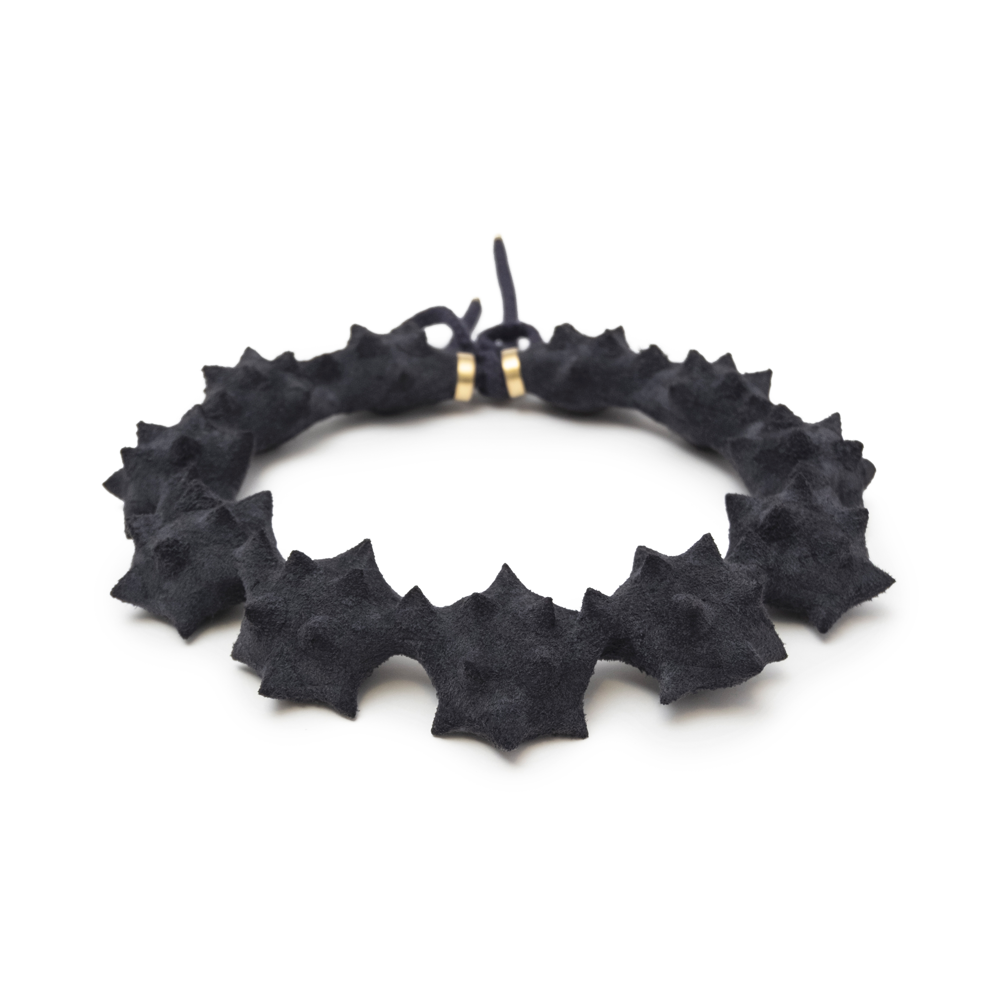 Materials: suede leather, cotton, brass Central pieces size: 220x210x35 mm