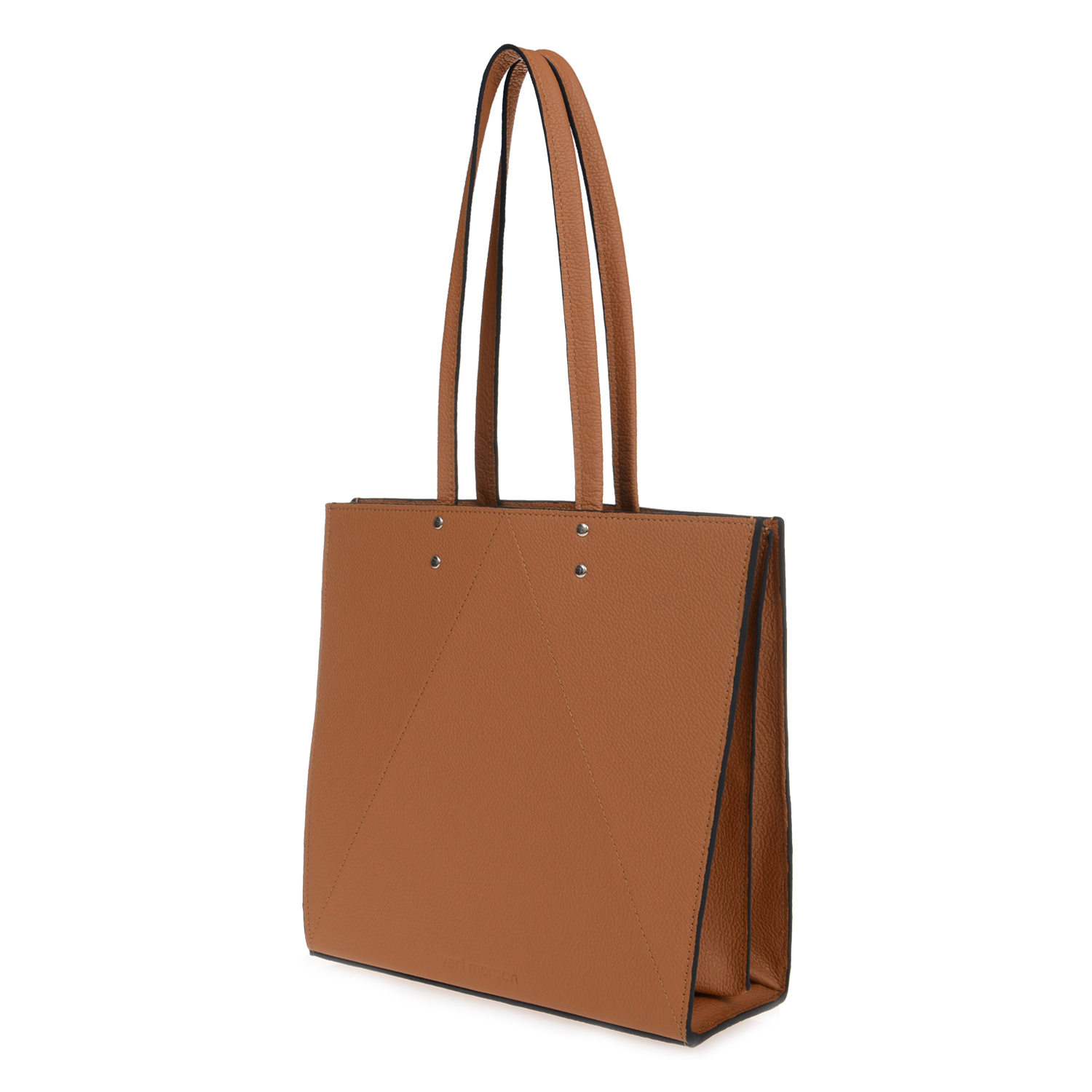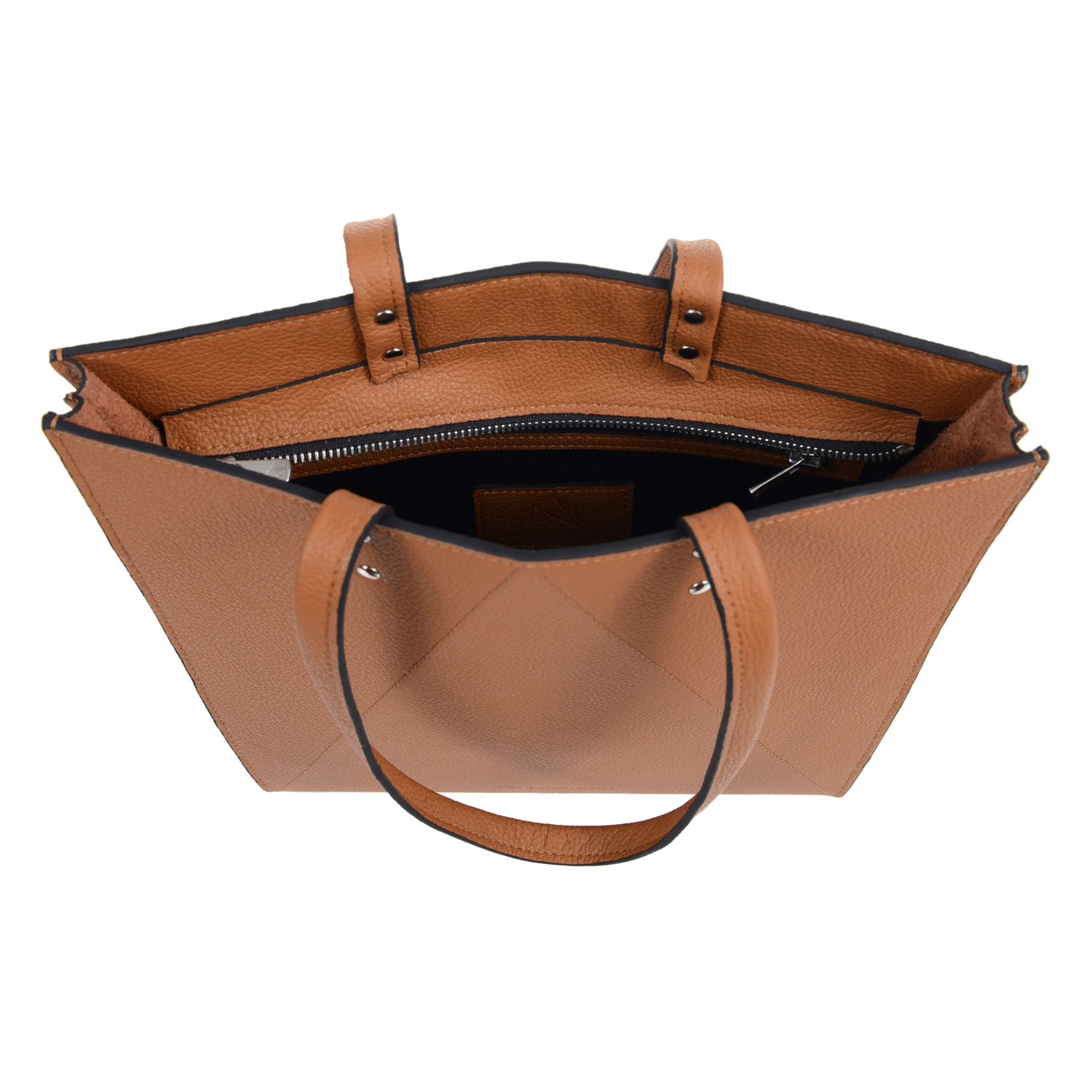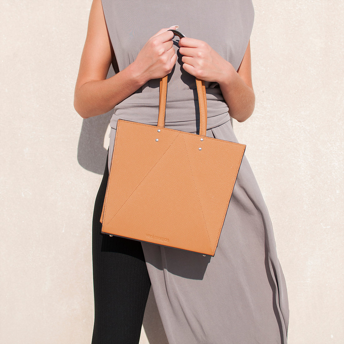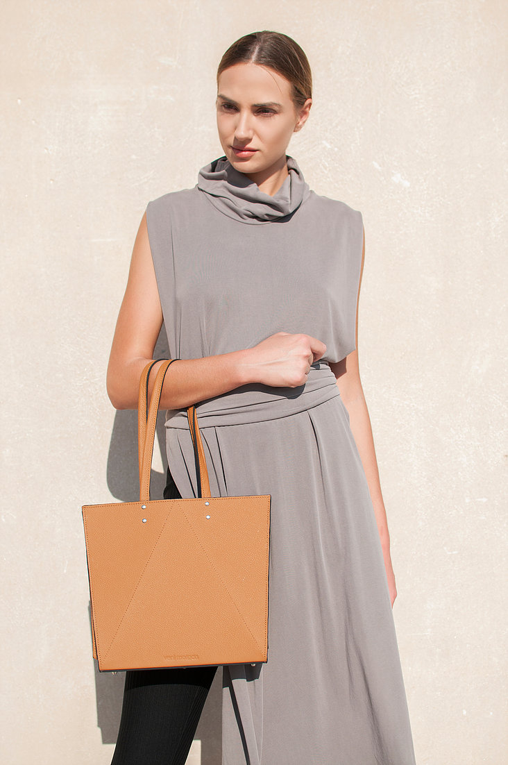 tato tote bag in brown leather with nikel details and two nikel zippers Inspired by Japanese origami, combined with contemporary, minimal design and created from the finest materials, the tato bag will uniquely complete your minimal outfit product details bag Length : 29cm Height : 26cm Depth : 10.5cm model Height : 1.77 m