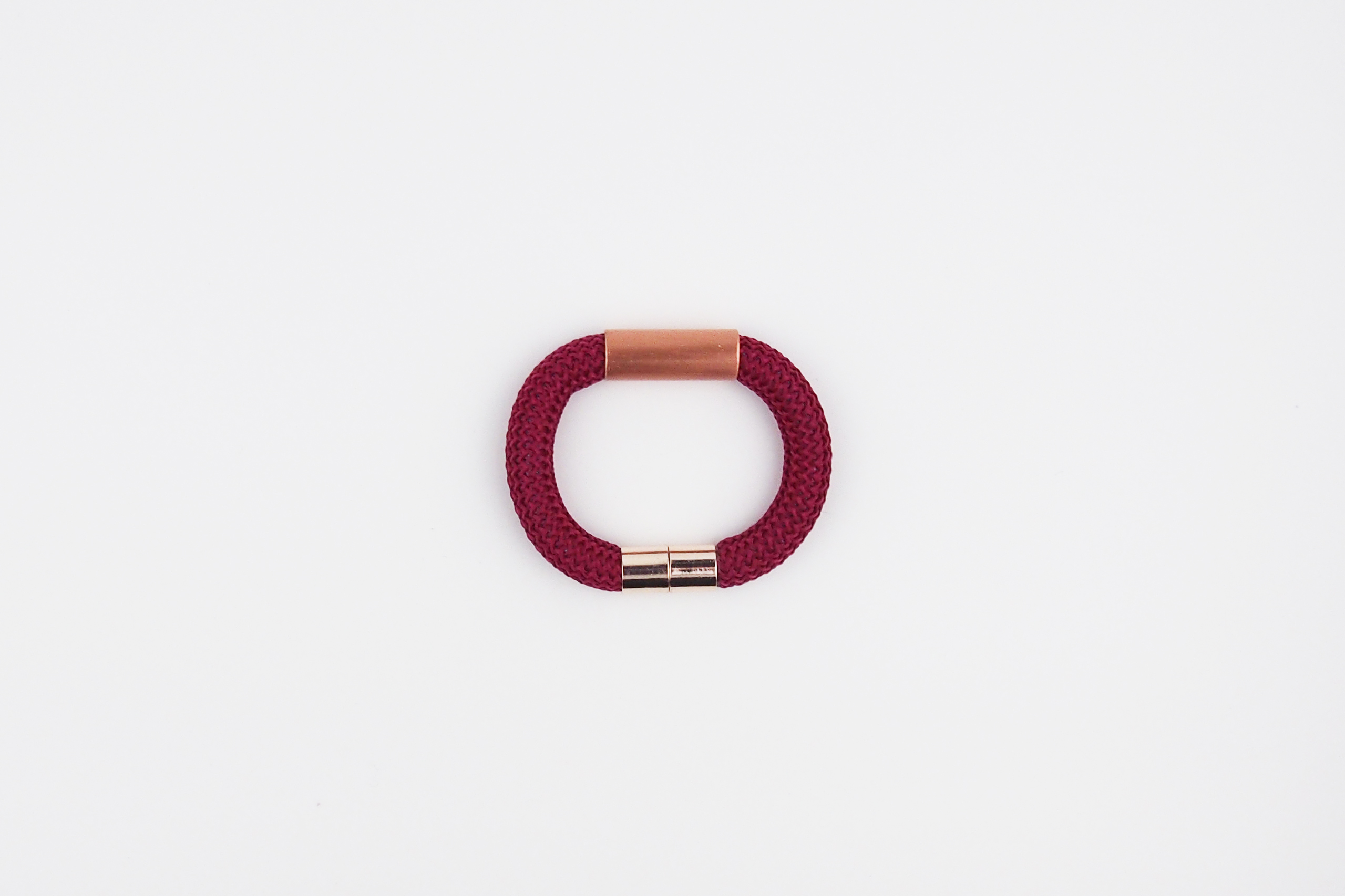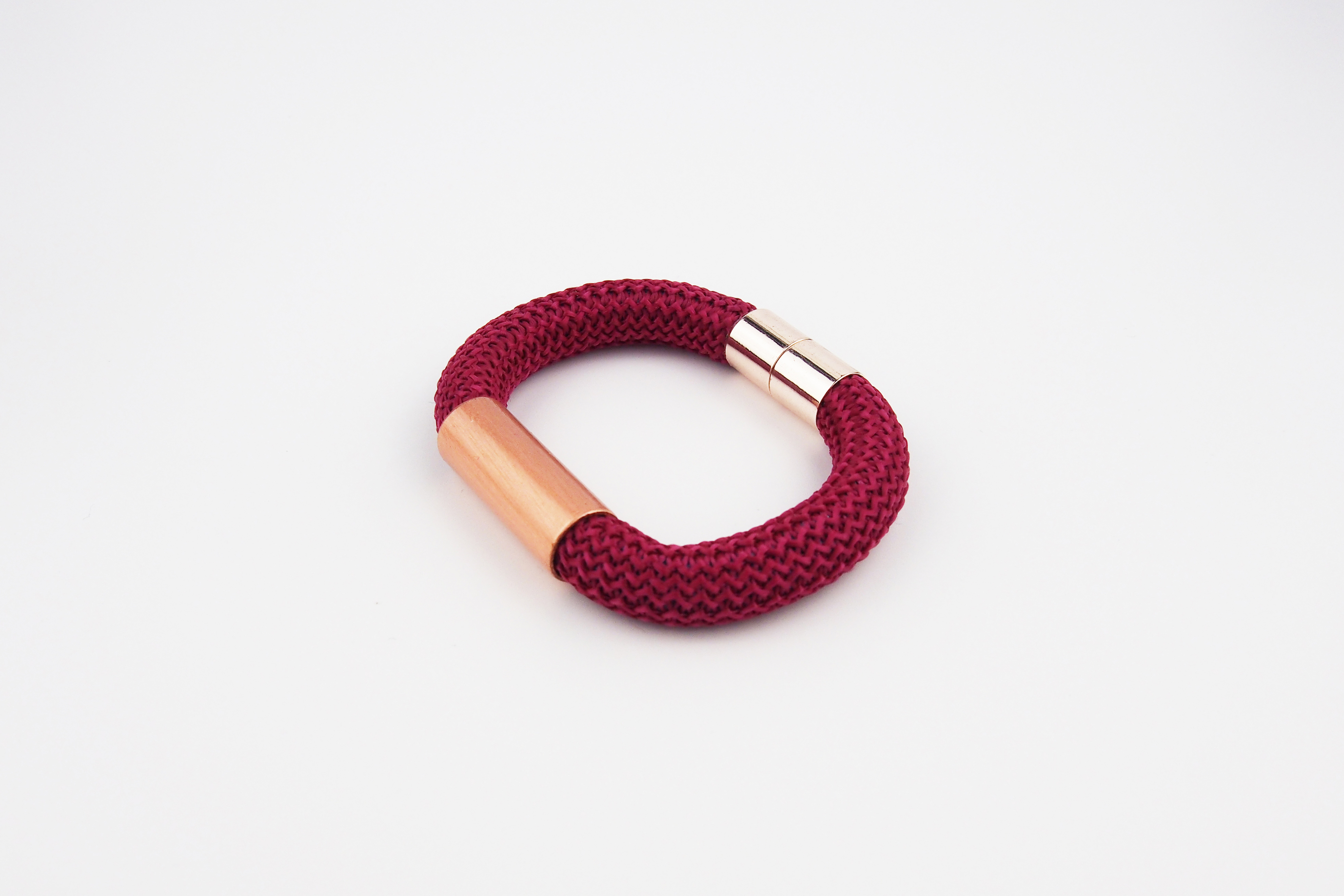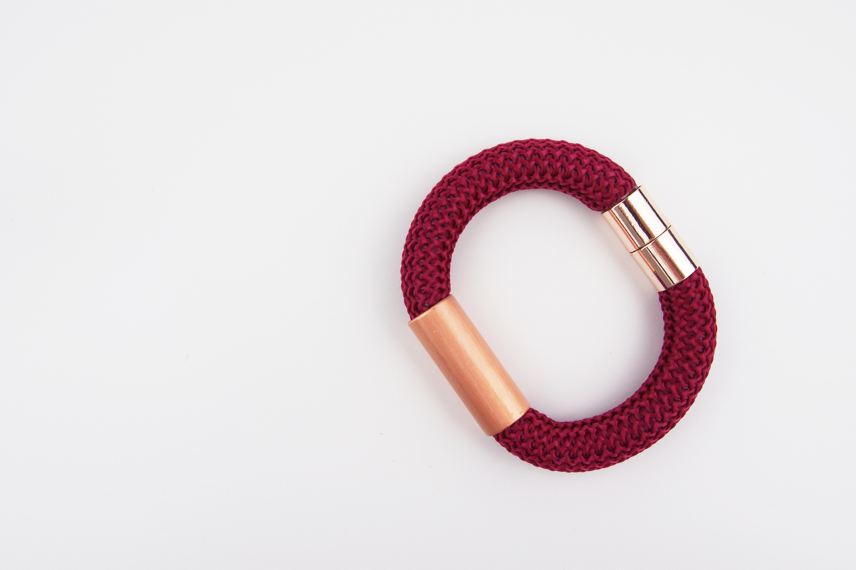 Specifics: - Handmade bracelet - Coated copper - Nautical cord - Rose gold magnetic closure - Available sizes: S, M, L - Width: circa 1cm - Weight: circa 20gr - Ø 12mm copper tube