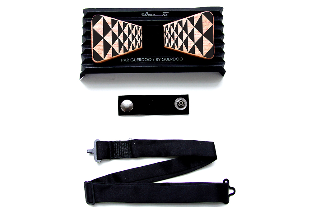 From “The Beau-Tie” Collection, these Reversible Wooden Bow Ties have won the “Best New Product Award” at NYNOW, New York in 2018. The bow ties are made in four different models, designed by Guerdoo and cut by James Klym, a Custom Electric Guitar Artist based in Montreal. All wood pieces are reclaimed from the remaining of his Guitars’ production, carefully cut and hand crafted at his workshop. So, each piece has a different color and grain patternand carries a story from the past, coming from a different guitar, which makes it unique and original. Each bow tie is reversible, with its geometric graphic pattern on one side and plain natural grain pattern on the other, it serves as two accessories embedded in one! This allows the user to have so many mix and match opportunities to create different styles. It is a great gift for everybody to use in any occasion from formal events like weddings, and graduation parties, to cool friend′s parties, proms, bars or a nice and chill family reunion. BEFORE CHOOSING ANY MODEL, IT IS IMPORTANT TO CHOOSE YOUR PREFERRED WOOD FINISHING : - MAPLE (LIGHT TONE) - MAHOGANY (MIDDLE TONE) - WALNUT (DARK TONE) Each piece will be assembled and ready to use at Guerdoo Design Studio. Proudly made in Montreal, Canada, our Bow Ties collection introduces a fresh approach towards how one can use an accessory. Our goal is to create a design that is comfortable, unique and most importantly undefeated by the force of Time! Please contact us for any questions, concerns, large orders, customer service, or feedback.