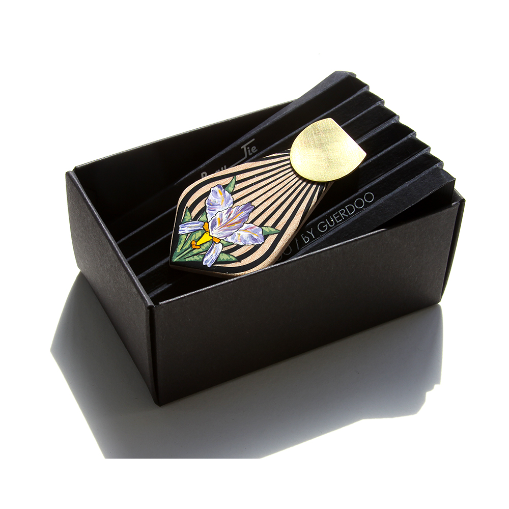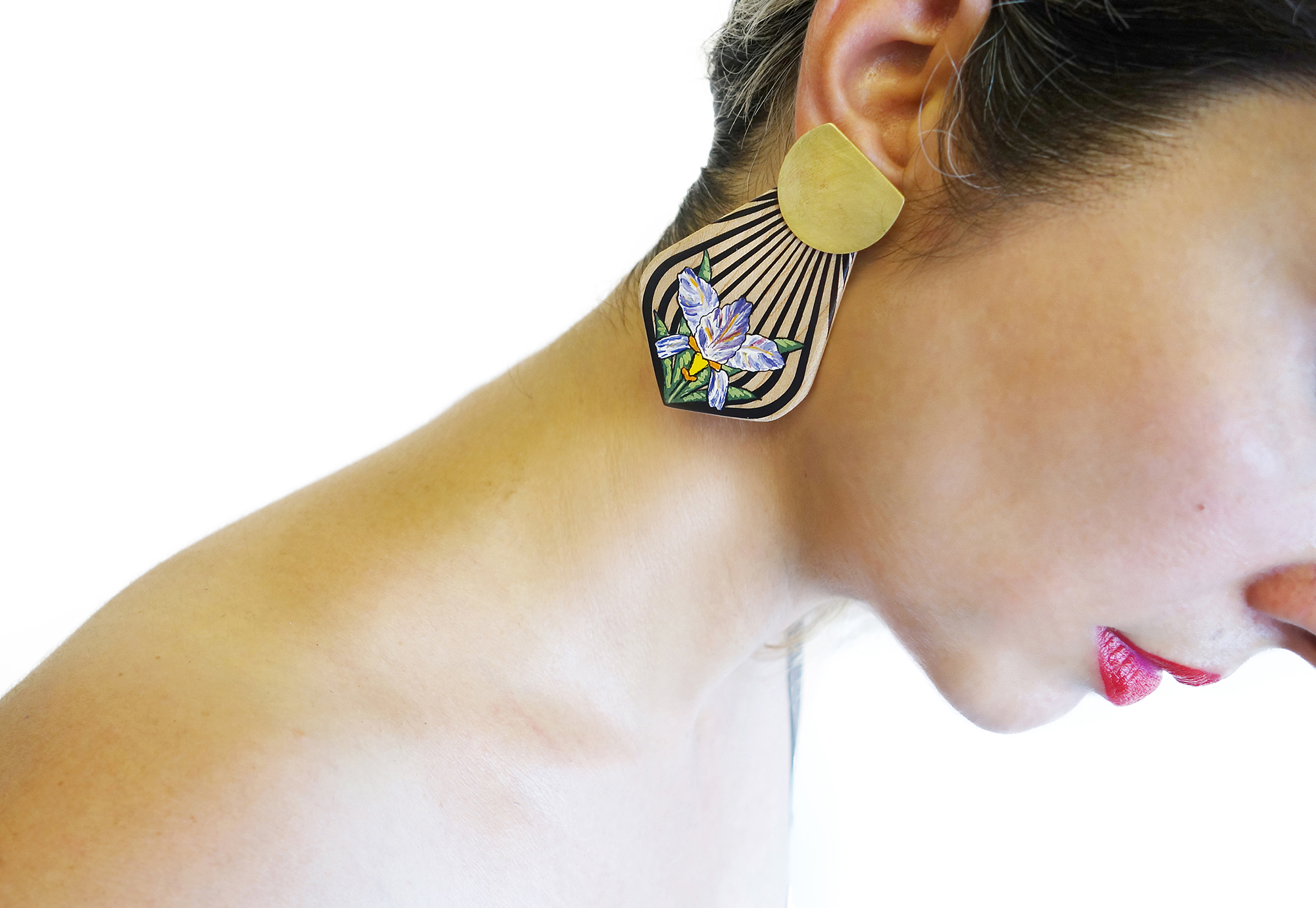 A collection of hand painted arts on black geometric backgrounds. A collage of tradition and modernity, freedom and formality, old and new, color and black ! Our goal is to get to a state of balance where there is neither left nor right, only here; A state in which there is no effect of past or future, only now, only beauty, peace and harmony. A state of Nirvana! It is about taking our imagination to the next level while hanging on to our roots from the past! Like the ″Beau-Tie″ Collection, these wooden earrings are reversible therefore have multiple uses depending on the occasion. The Material is also reclaimed from Electric Guitar wood. All pieces of the product are made, and assembled in Montreal, Quebec. Please contact us if you have any questions regarding this item.
